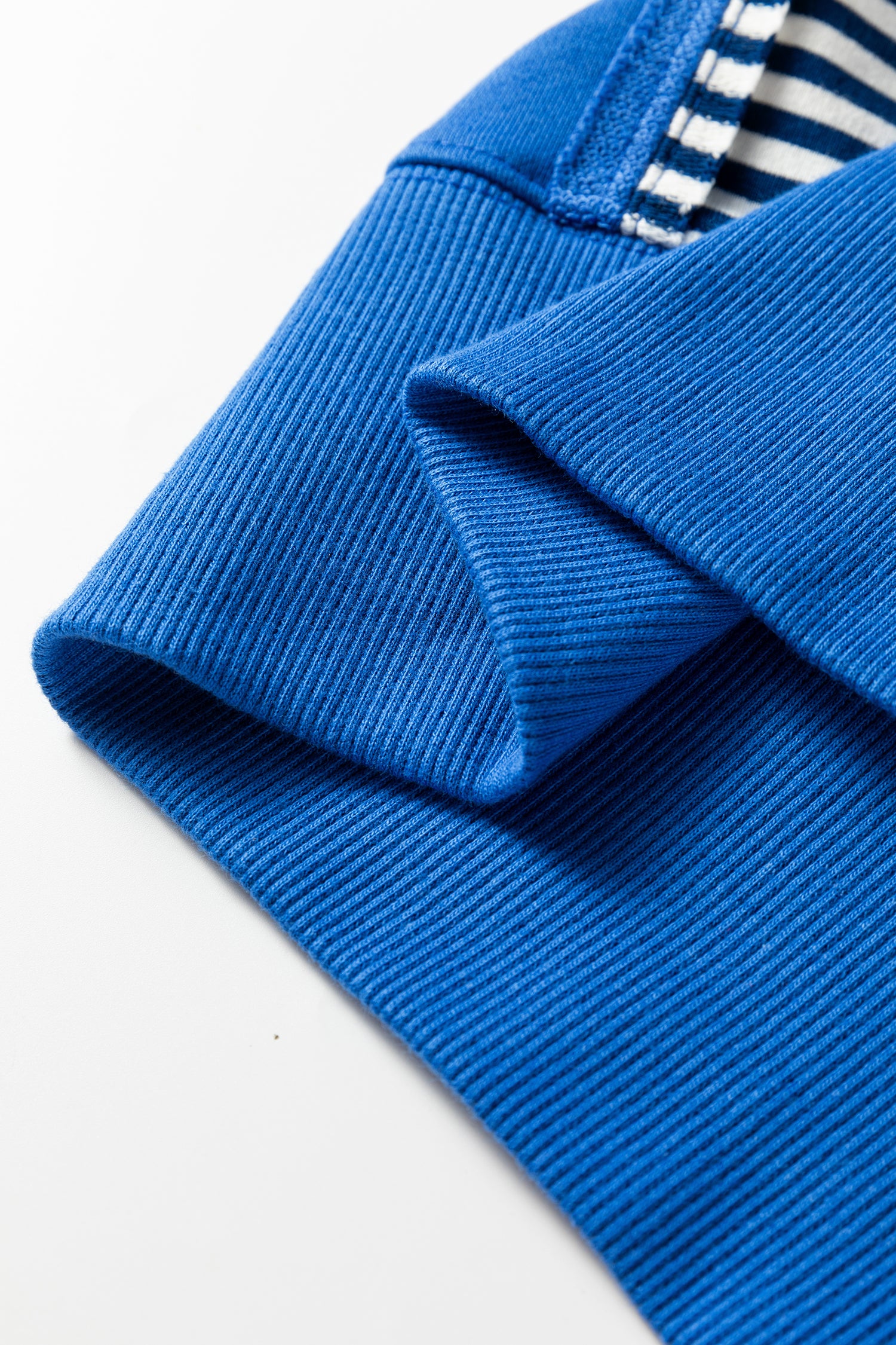 Dark Blue Striped Patchwork Sleeve Colorblock Sweatshirt