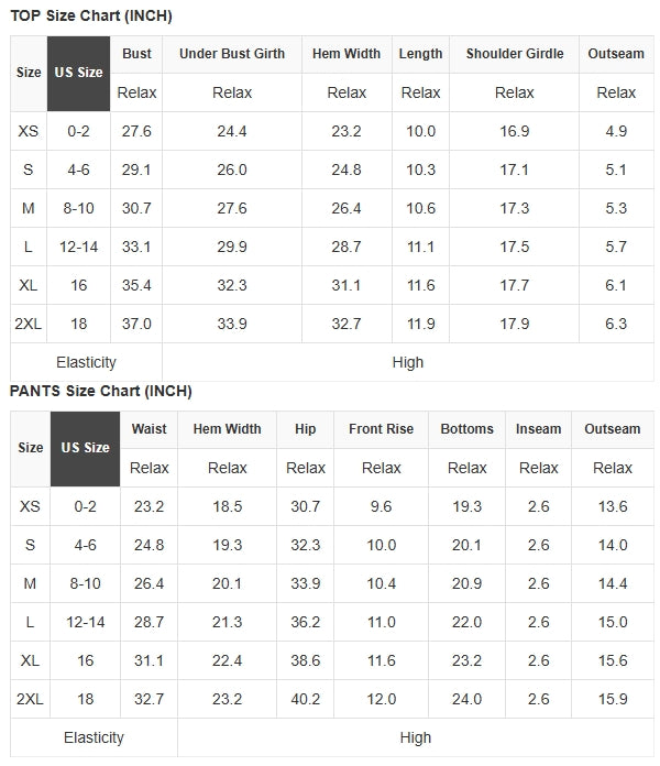 TOP Size Chart (INCH)