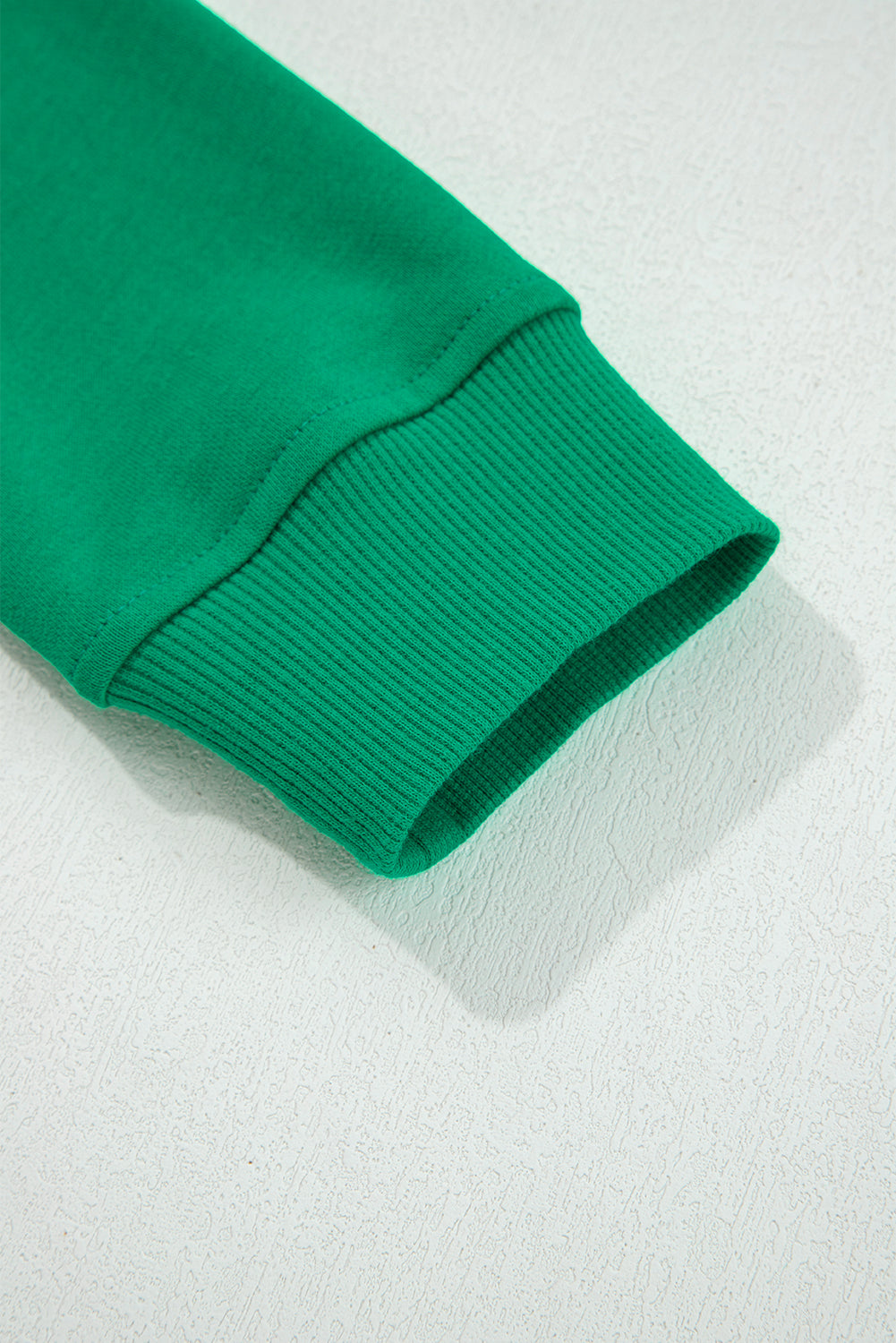 Dark Green Contrast Piping Crewneck Pullover Mini Skirt Set