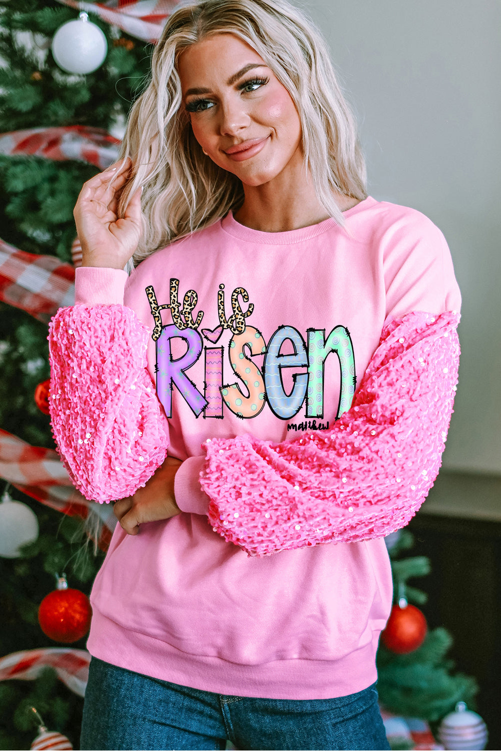 This Sequin Patchwork Long Sleeve Pullover Top adds a festive sparkle to your Easter celebrations with its dazzling sequin details.