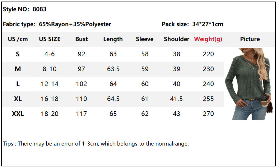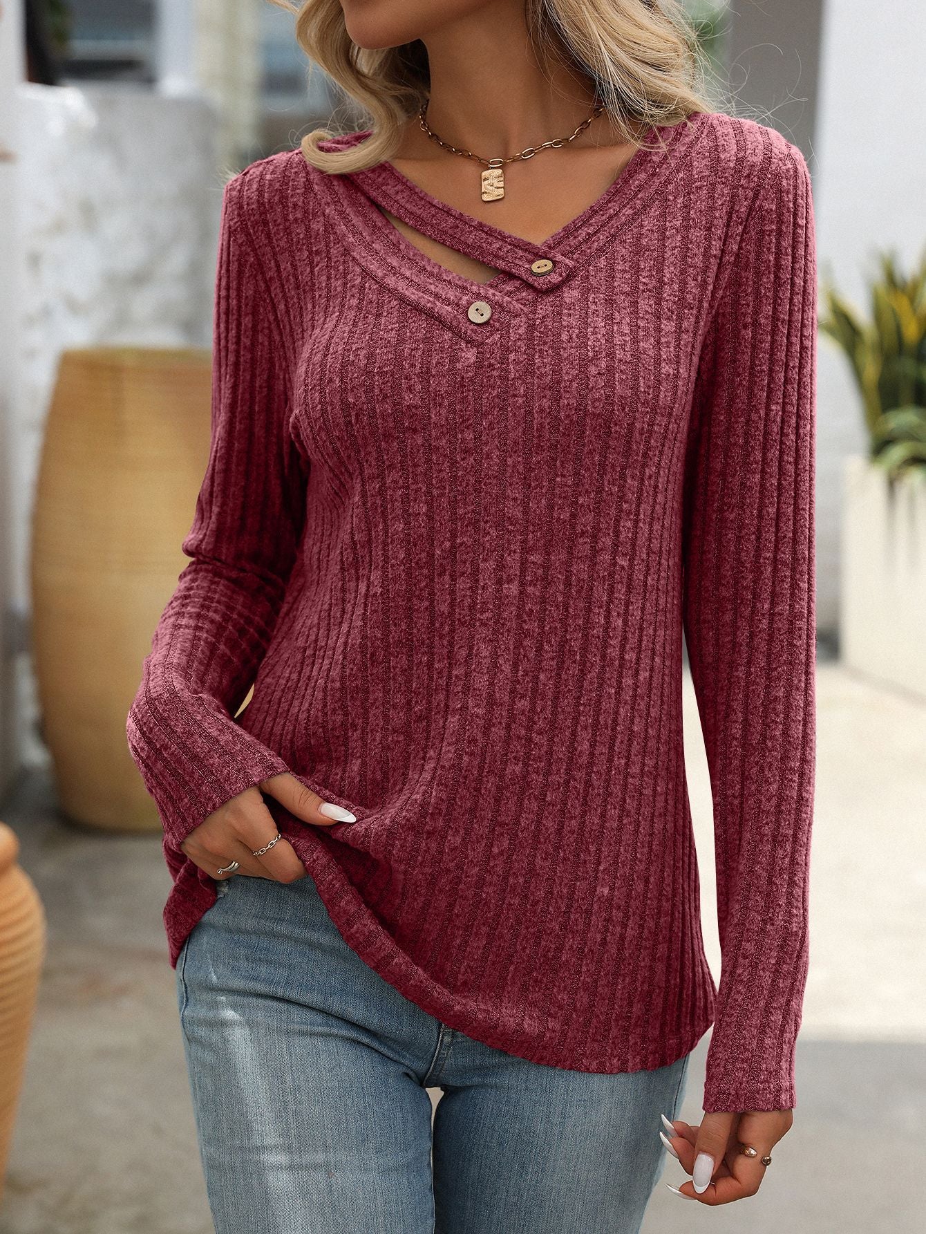 V-neck Button Top Pit Strip Sweater Long Sleeve