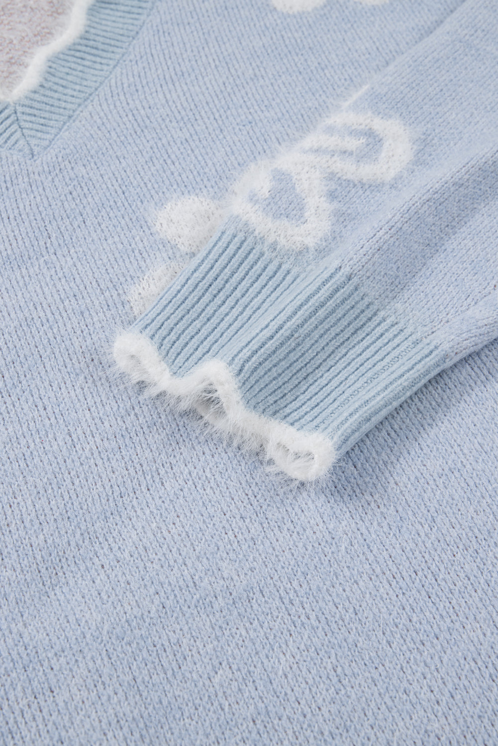 Gray Fuzzy Flower Scalloped V Neck Plus Sweater