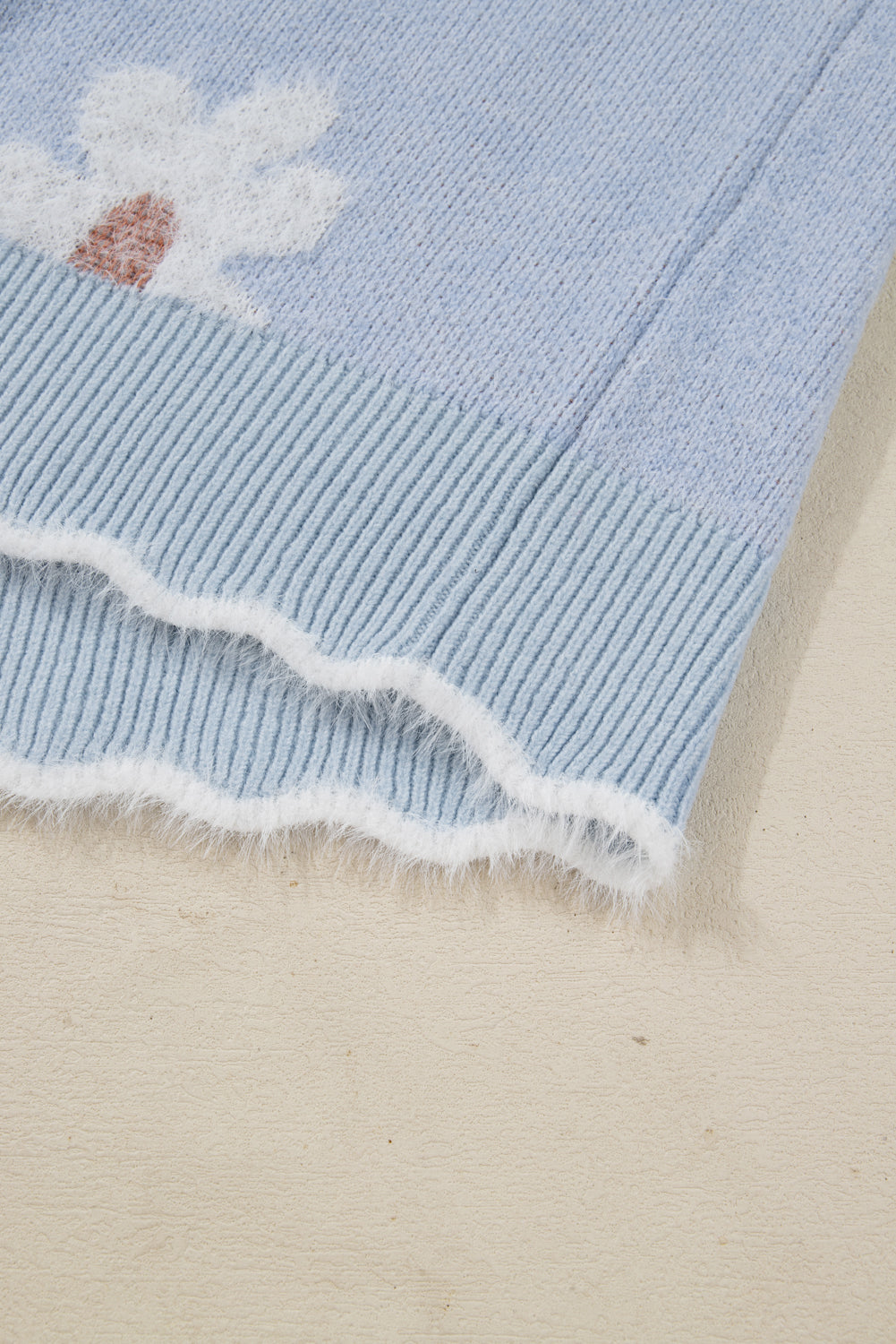 - The fuzzy flower pattern makes this plus knitted top textured and feminine.