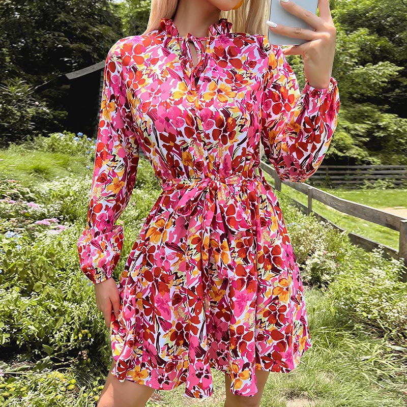 - Women's Lace-Up Slim Fit Lace Neck Printed Dress makes your closet stand out. Whether you're attending a special event or just want to add a touch of elegance to your everyday look, this is the dress for you. Order now and experience the perfect blend of comfort, style and sophistication!