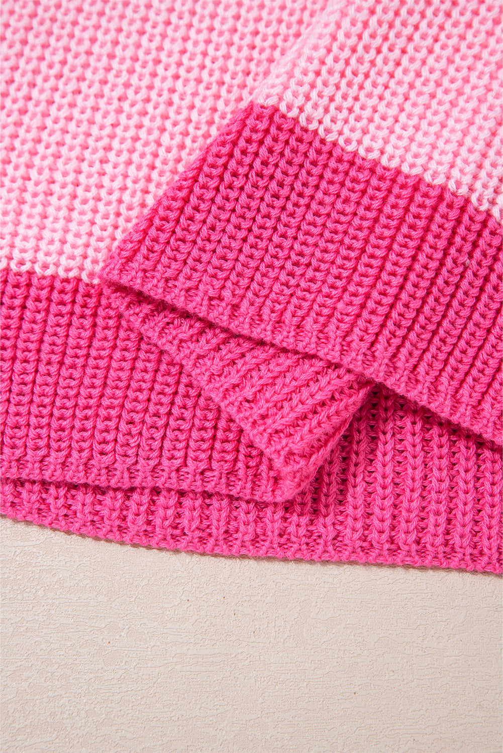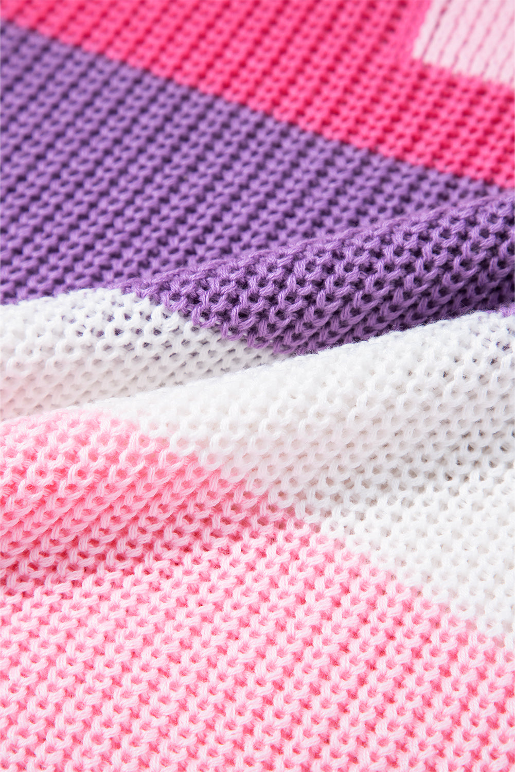 Multicolour Color Block Notch V Neck Sweater T Shirt