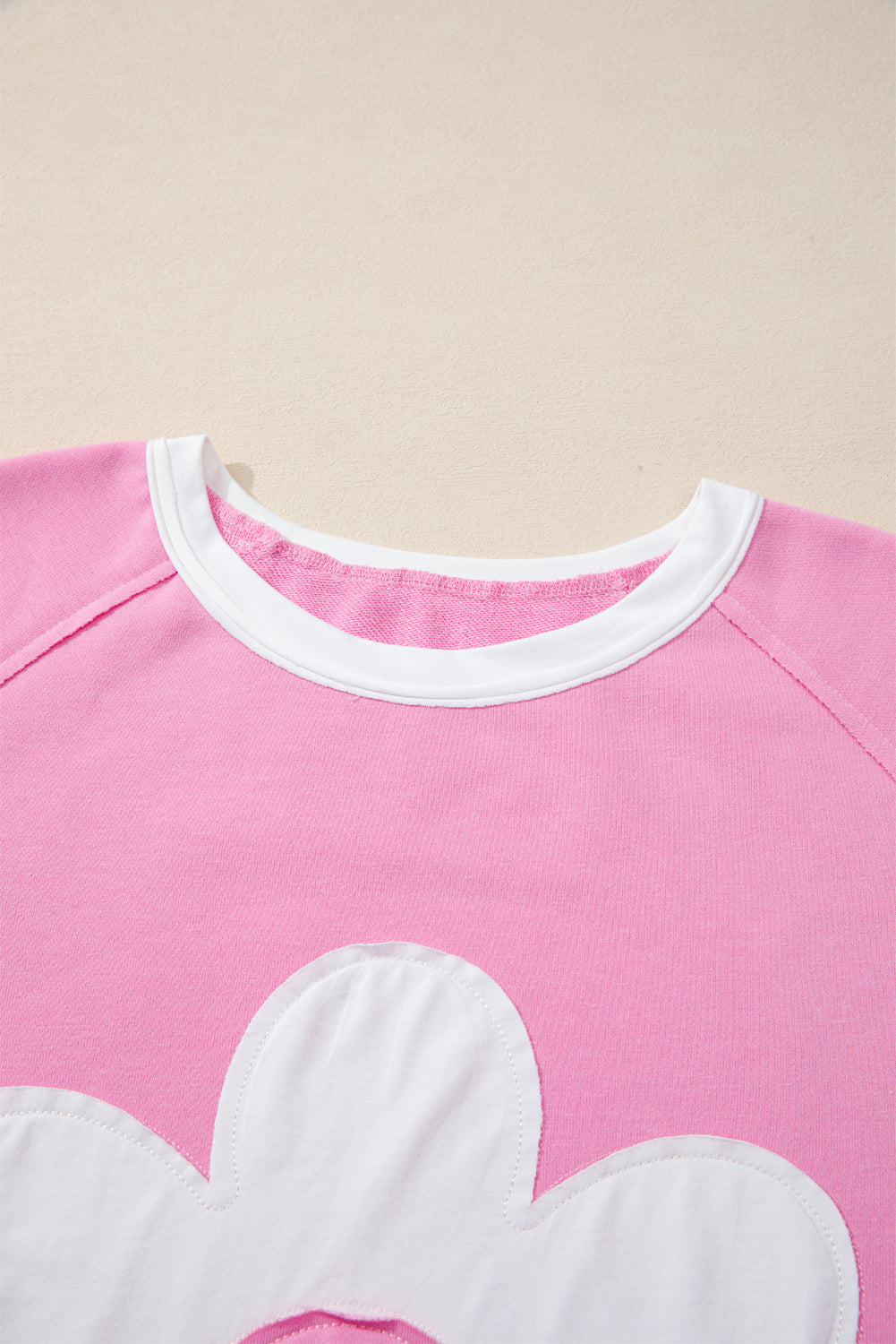 Orchid Bouquet Big Flower Patched Raw Seam Color Block 2 Piece Loose Pant Set