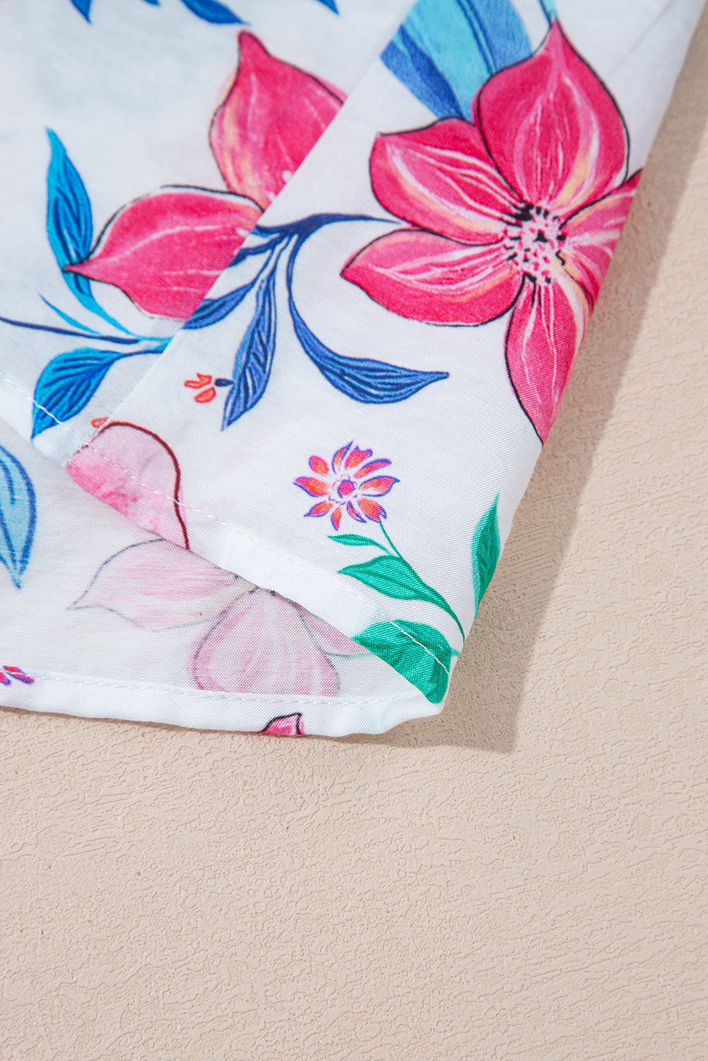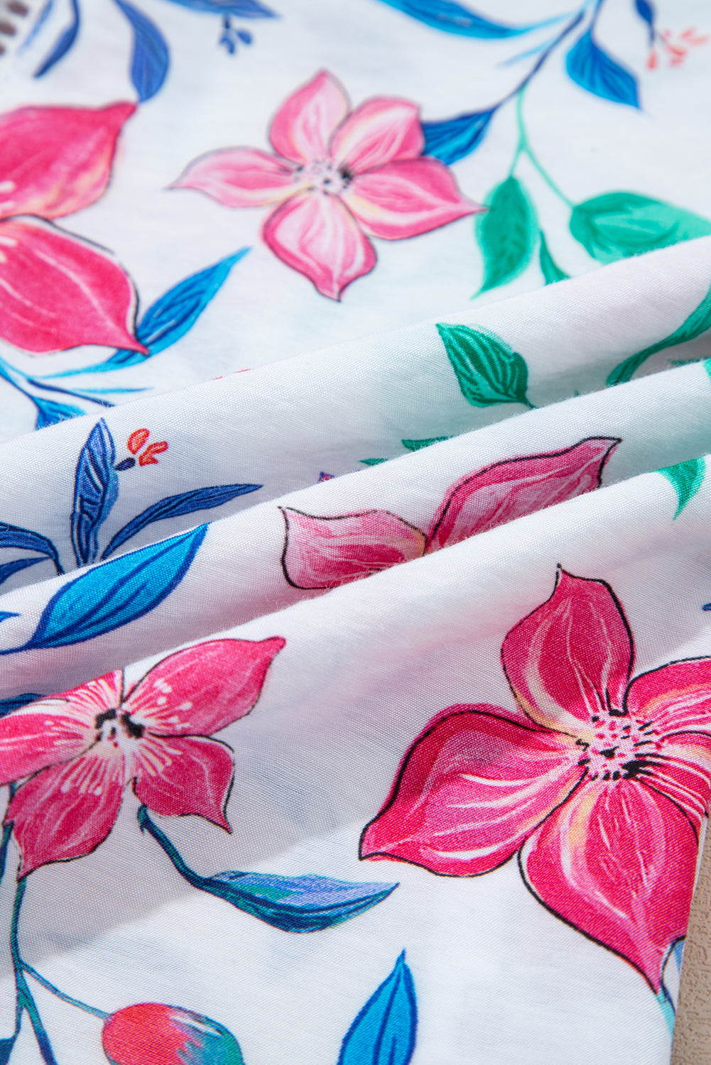 Pink Floral Print Lace Detail Button-up Long Sleeve Shirt