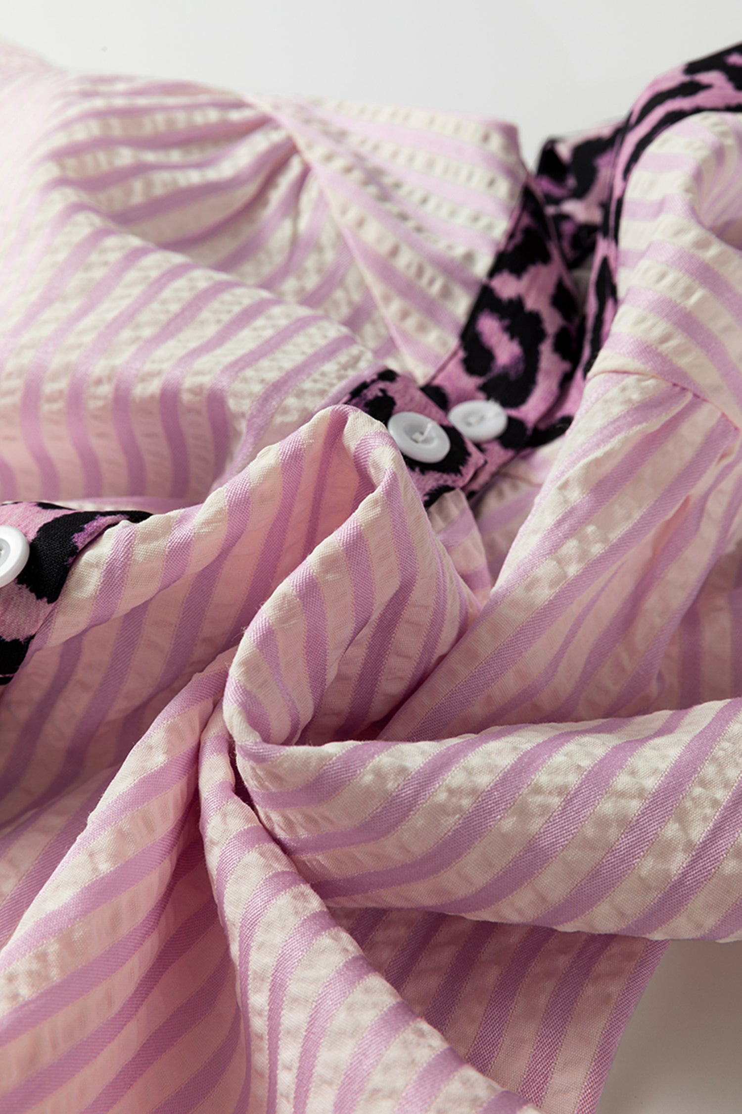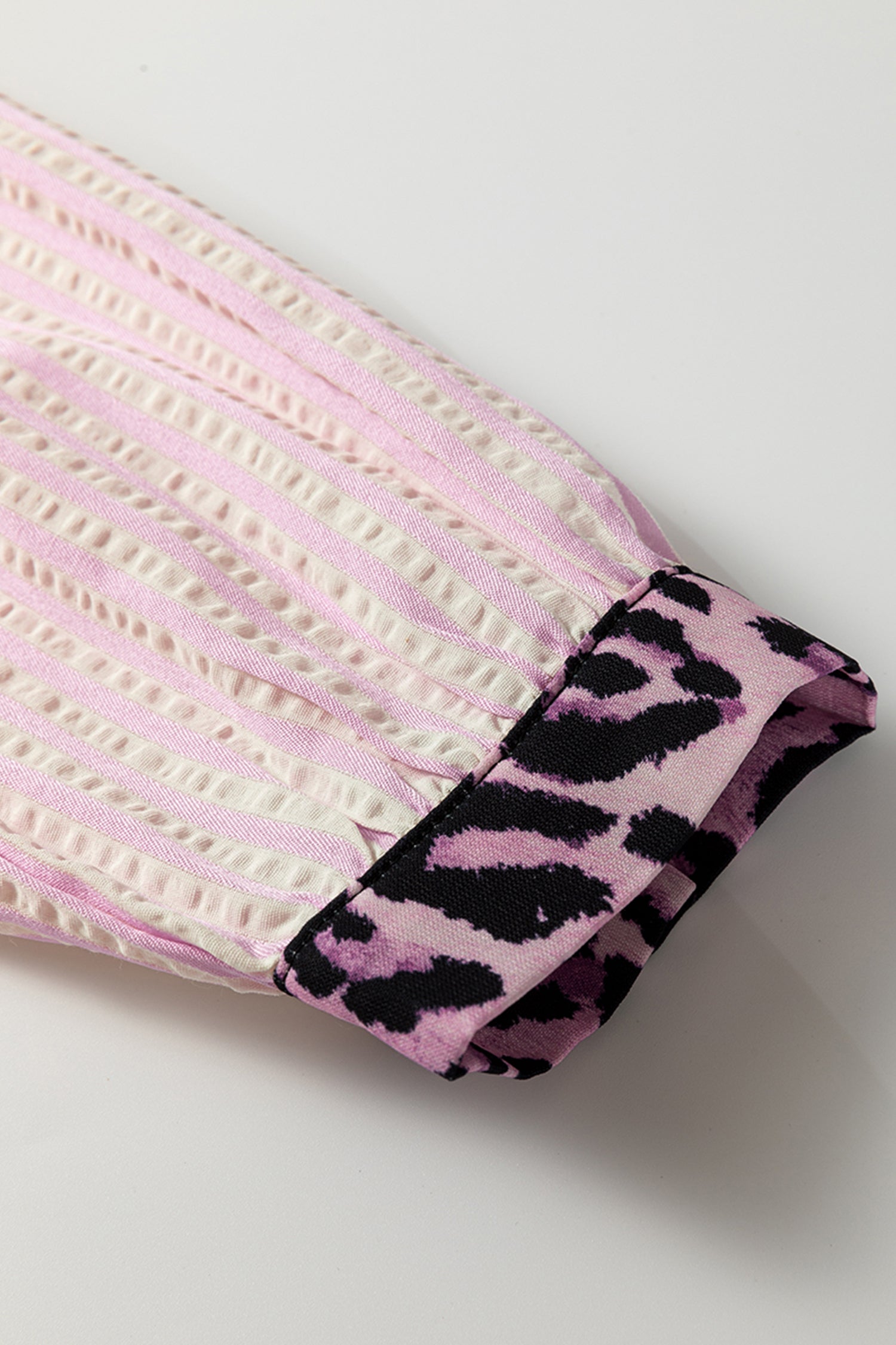 Pink Stripe Leopard Patchwork Long Sleeve Shirt