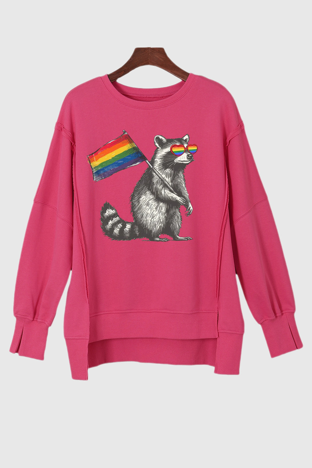 Pride Exposed Seam Drop Shoulder Slit High Low Hem Sweatshirt
