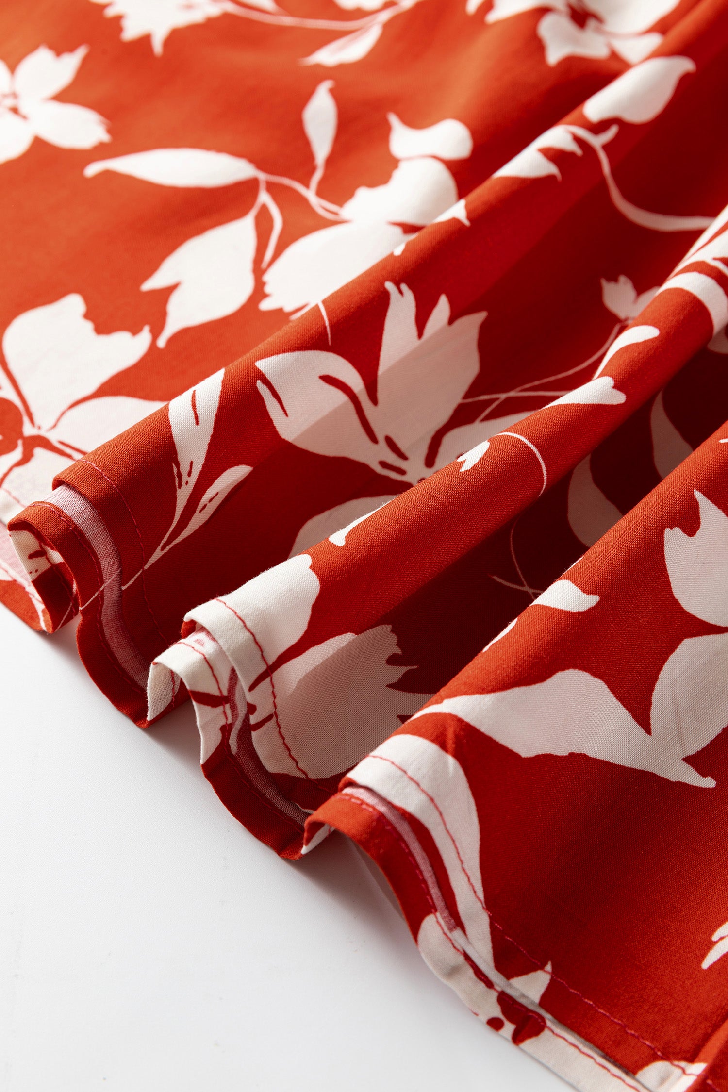 Featuring allover floral prints and lettuce trimming details.