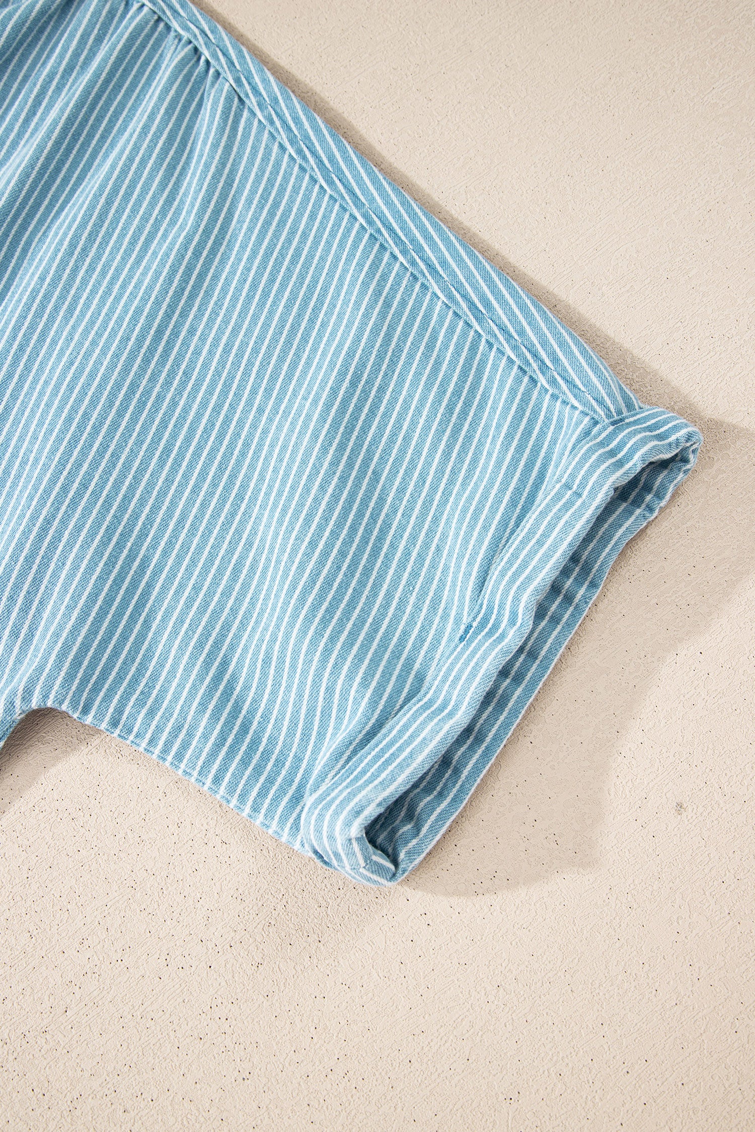 Sky Blue Stripe Cuffed Short Sleeve Button up Loose Shirt
