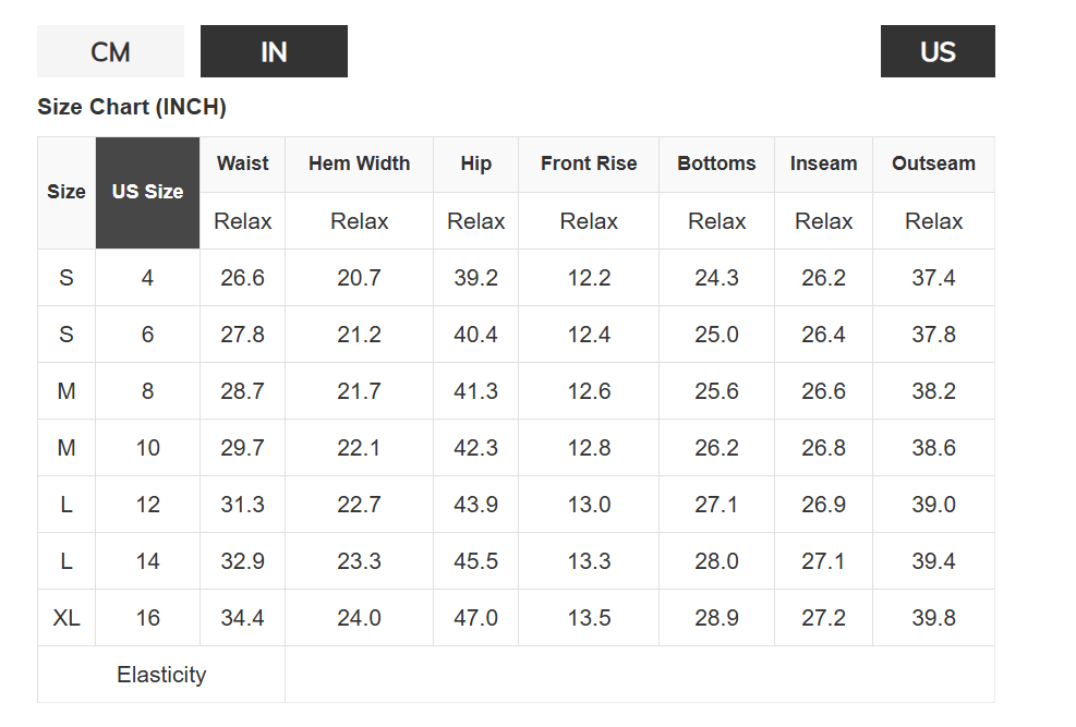 Size Chart (CM)