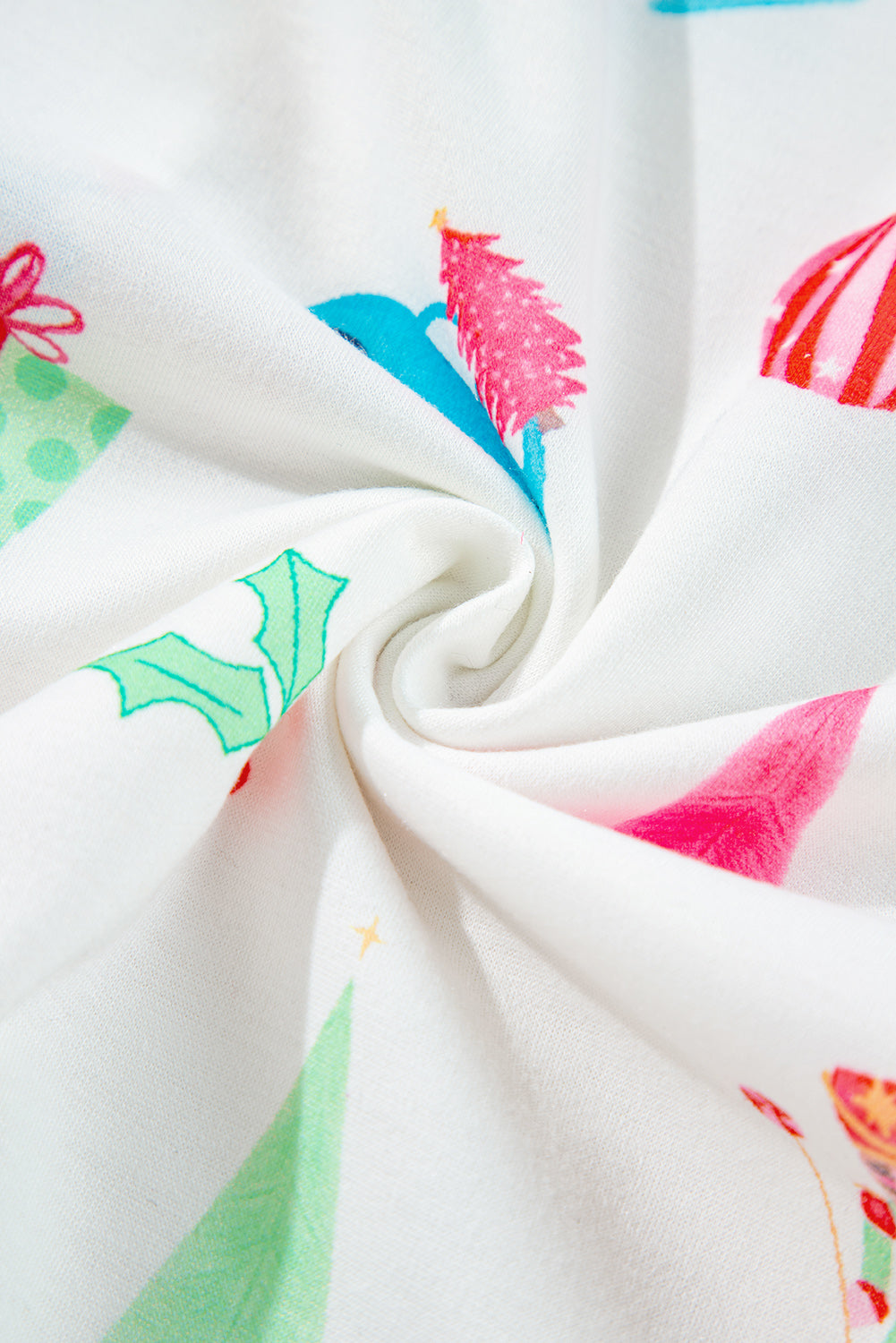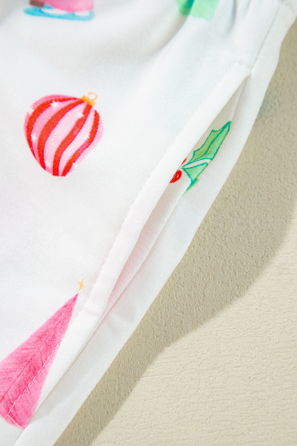 White Christmas Print Short Sleeve Shirt and Shorts Pajama Set