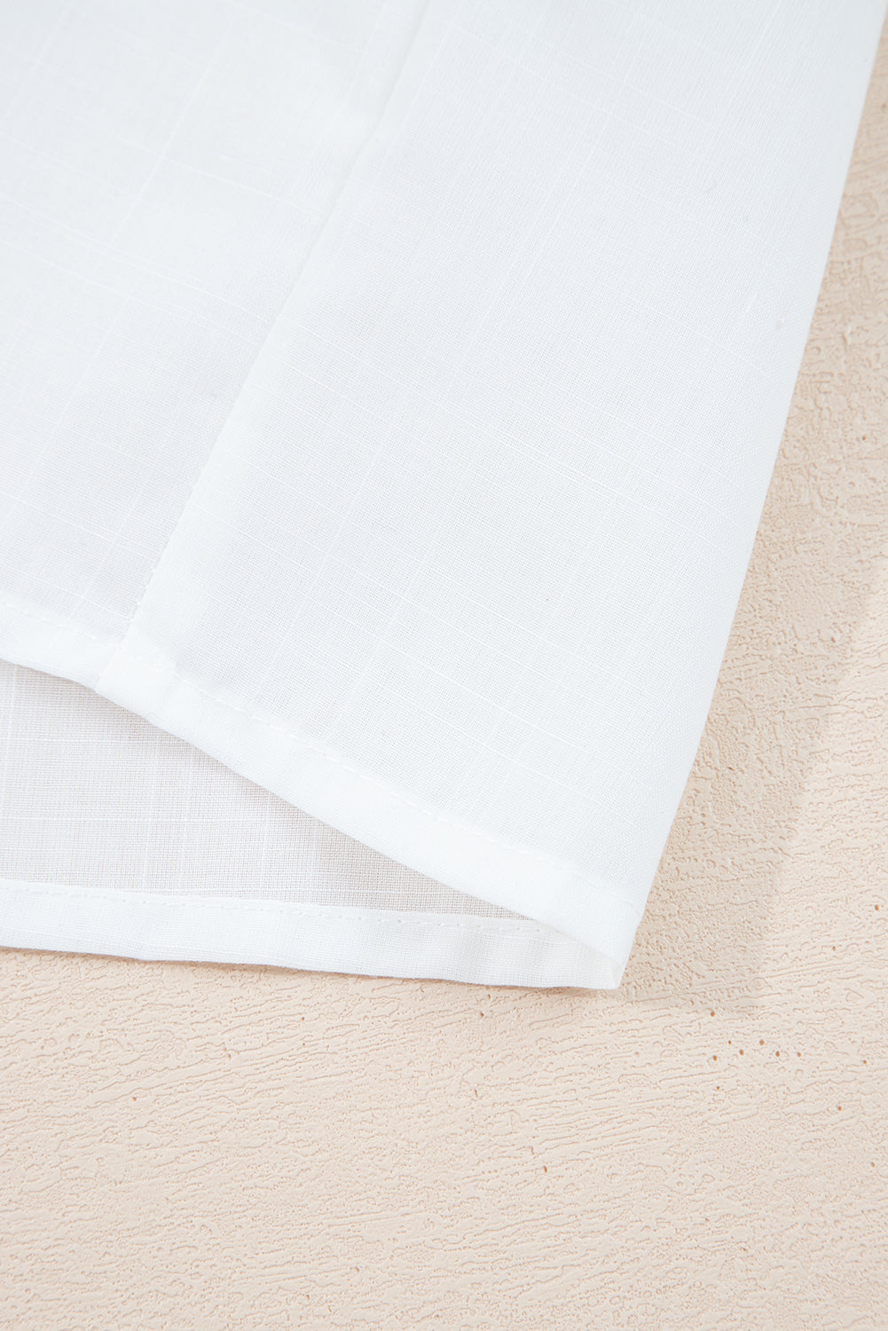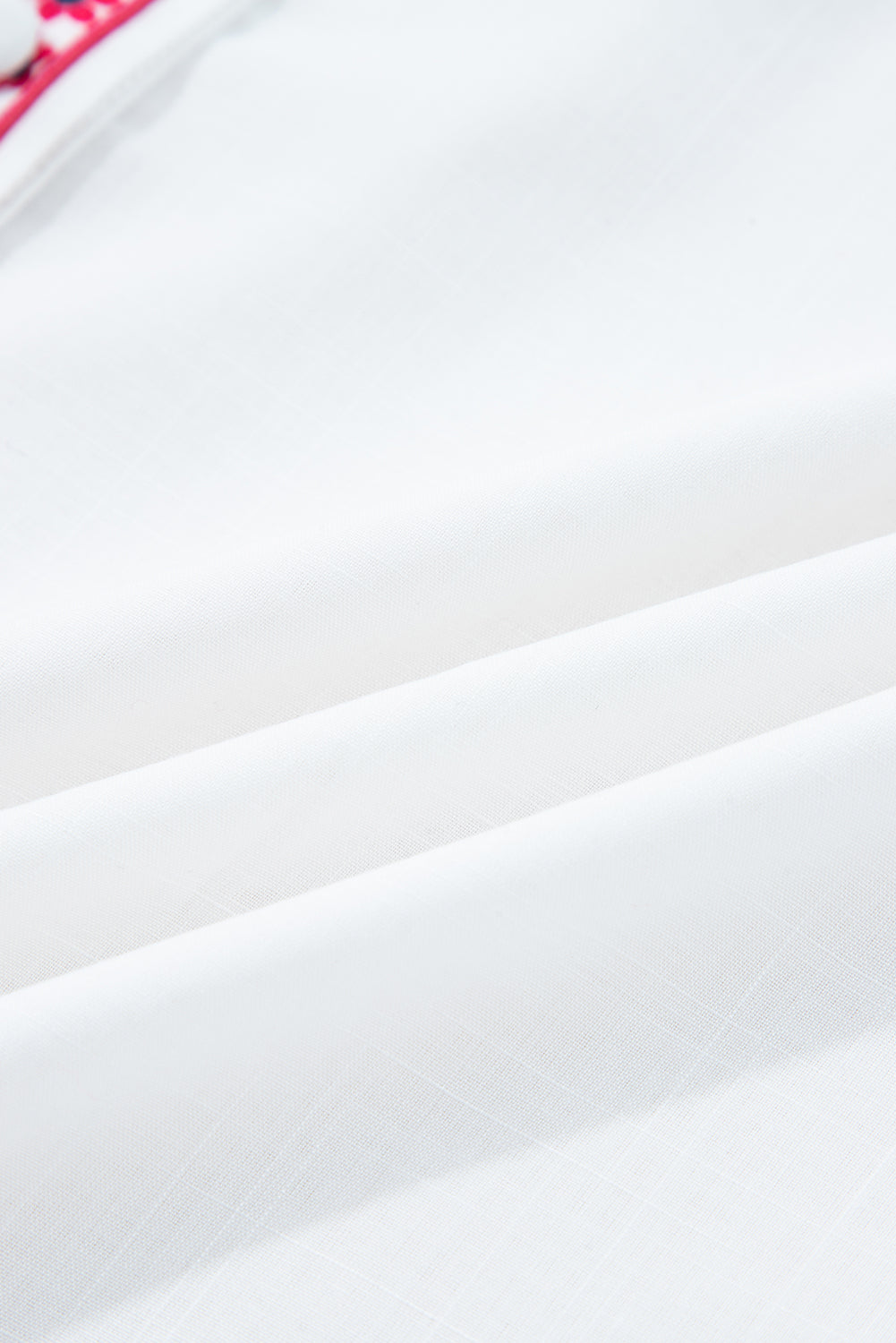 White Floral Embroidered Puff Long Sleeve Casual Shirt