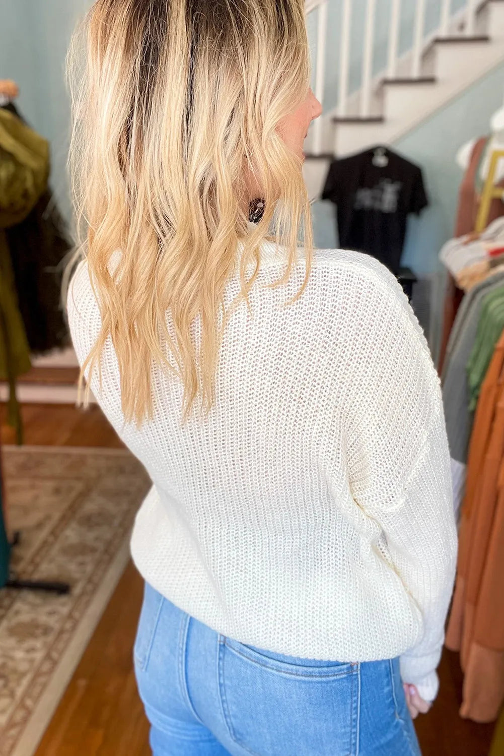 White Gobble Embroidered Graphic Thanksgiving Holiday Sweater