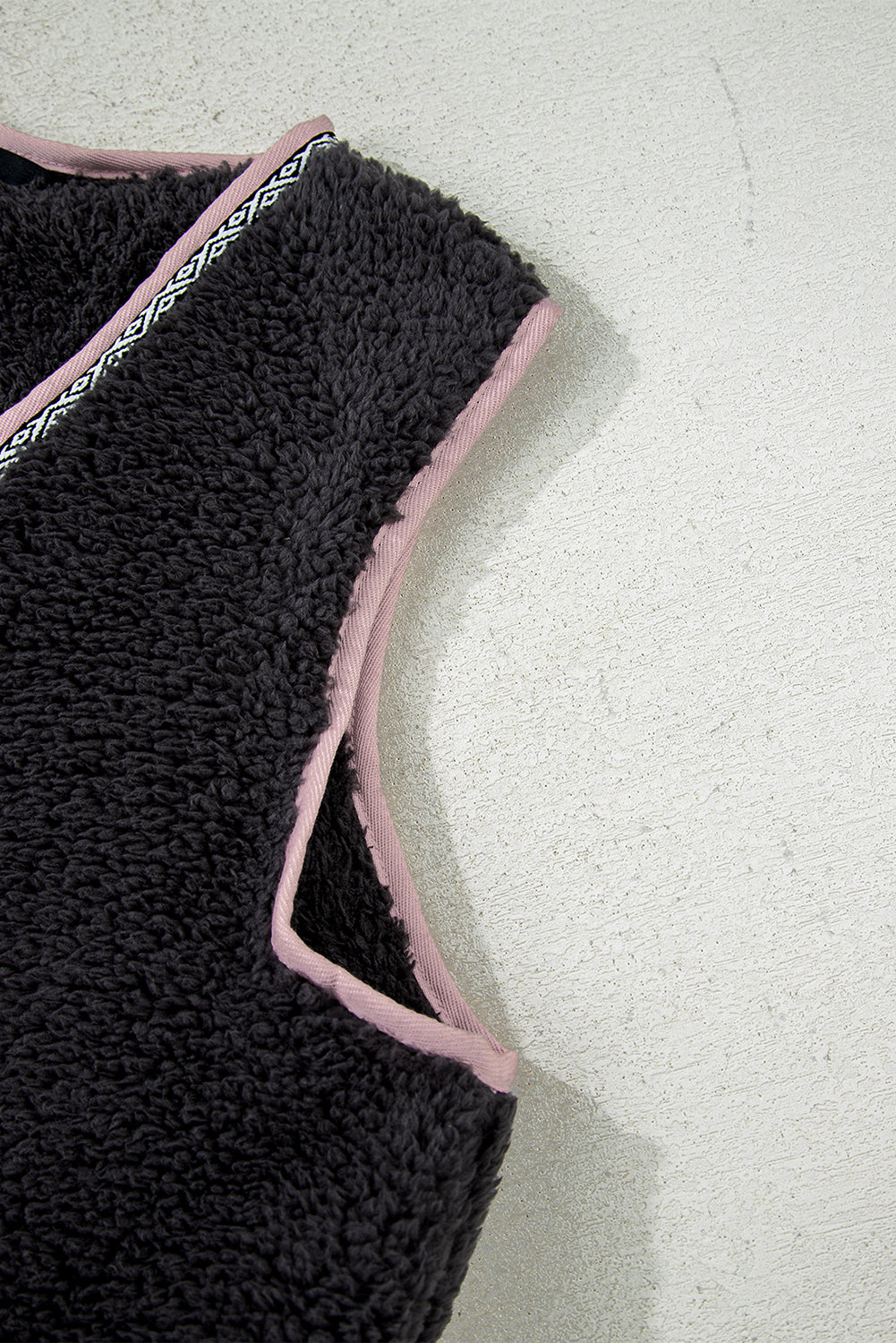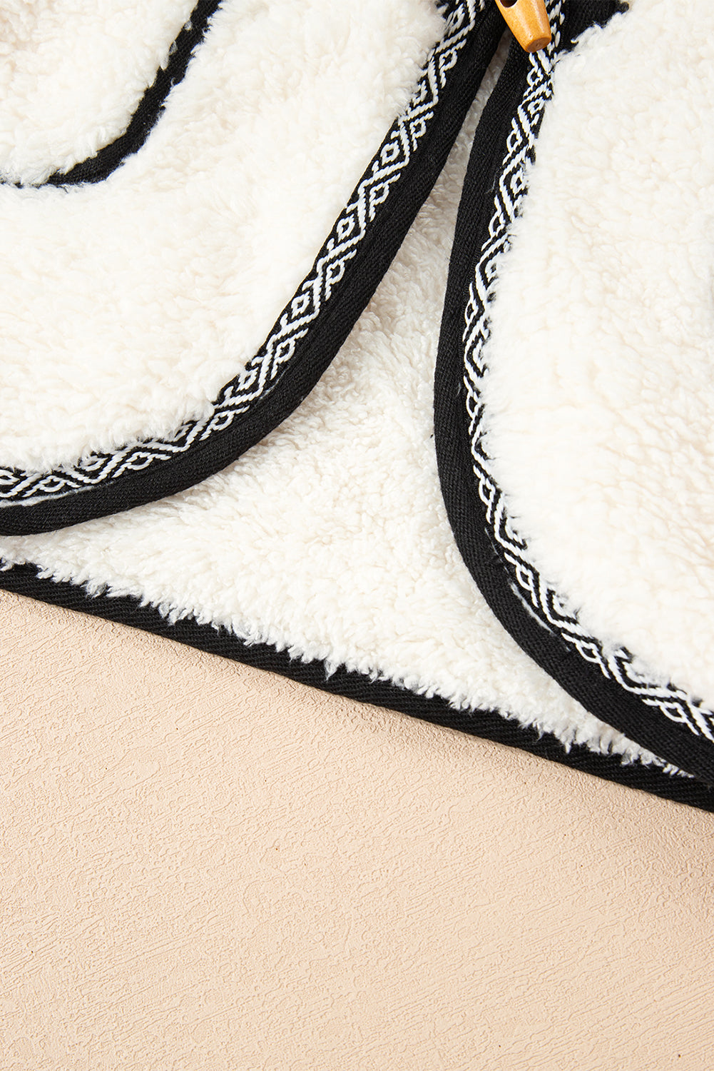 White Sherpa Contrast Trim Patch Pocket Cartridge Toggle Button Vest