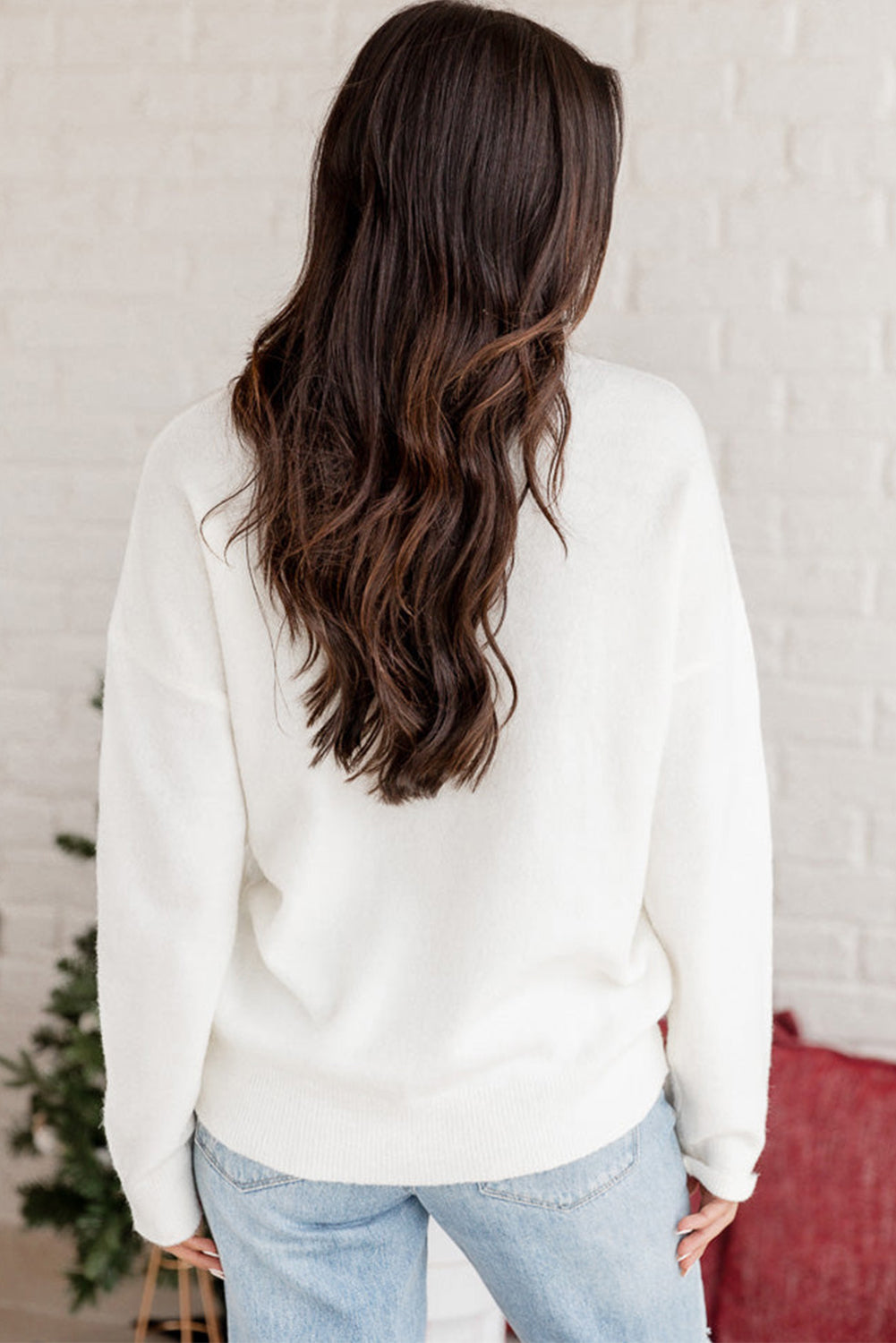 - The tinsel graphic makes this white sweater sparkling and festive.