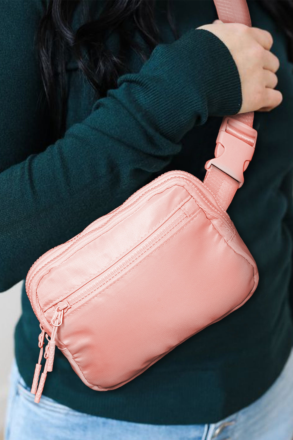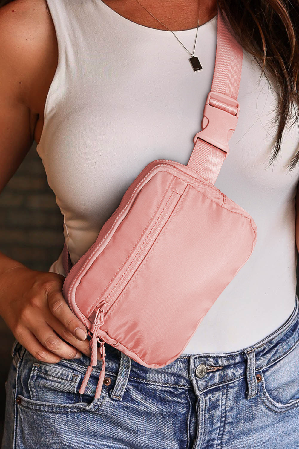 Wide Belt Zipped Square Crossbody Bag