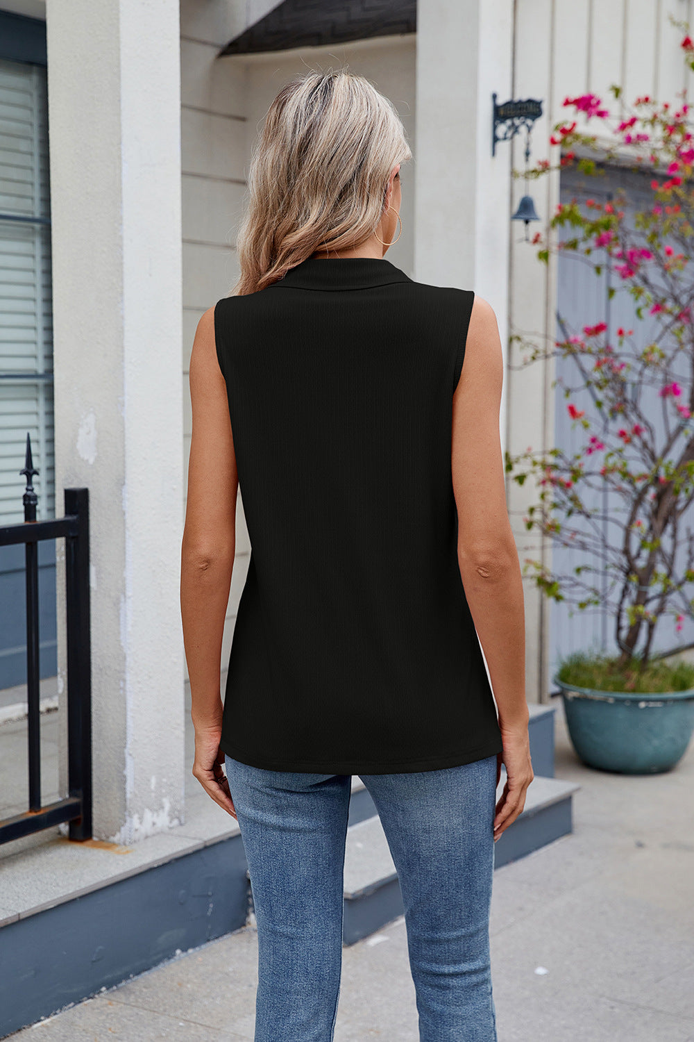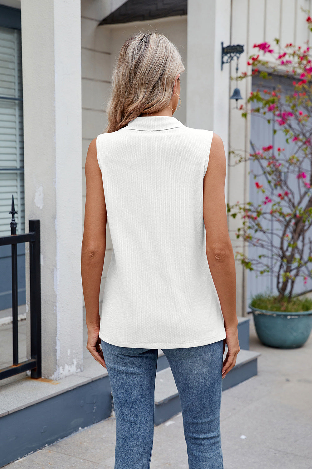 Lapel Zipper Sleeveless Loose T-Shirt Vest