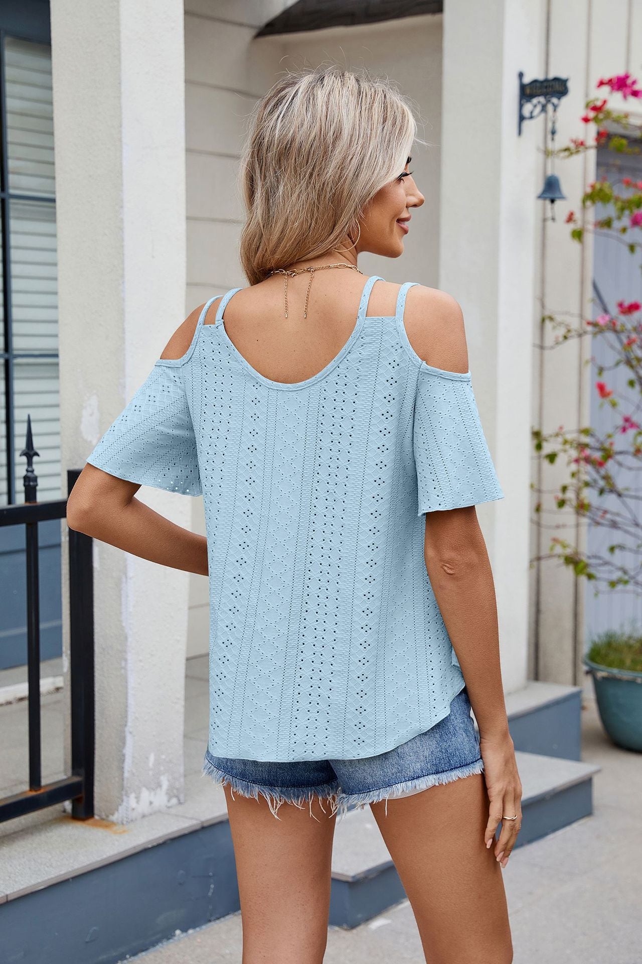 Flattering and Trendy: The open shoulder design combined with flutter sleeves creates a flowy, relaxed fit that flatters various body types.