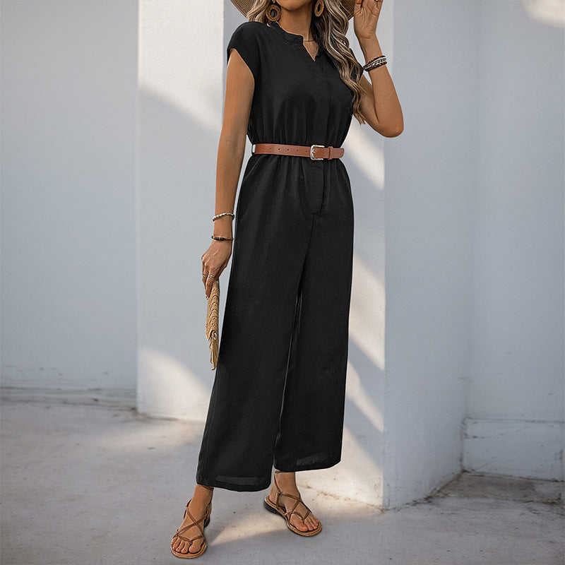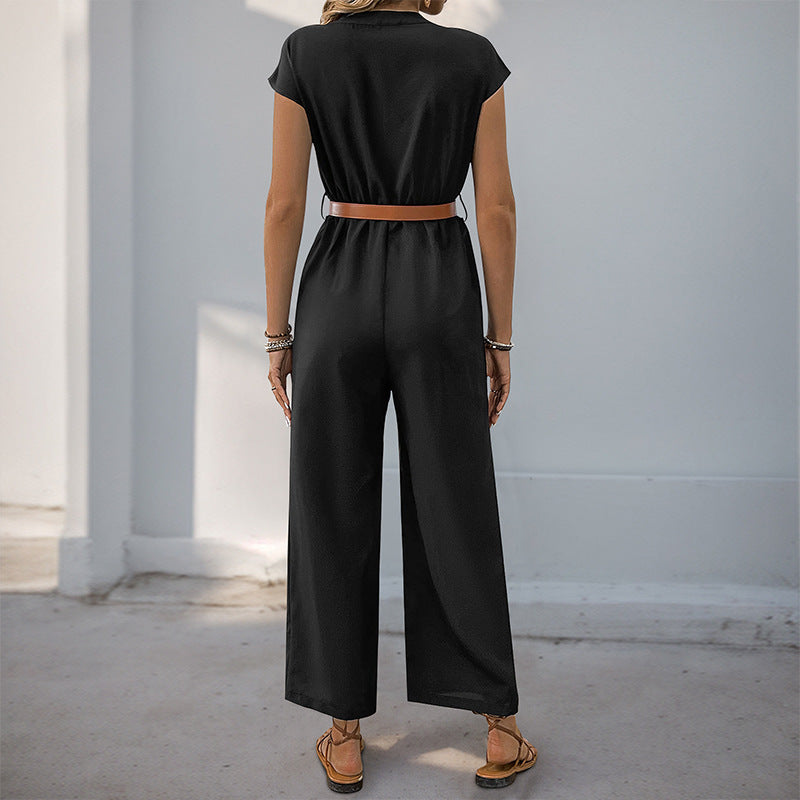 Stand-up Collar Solid Color Straight Leg Jumpsuit