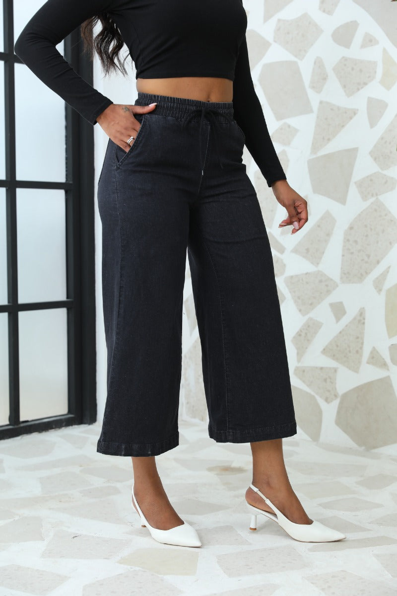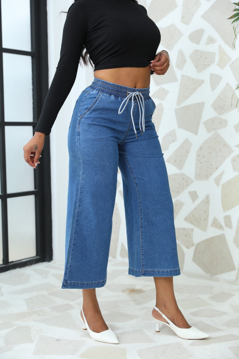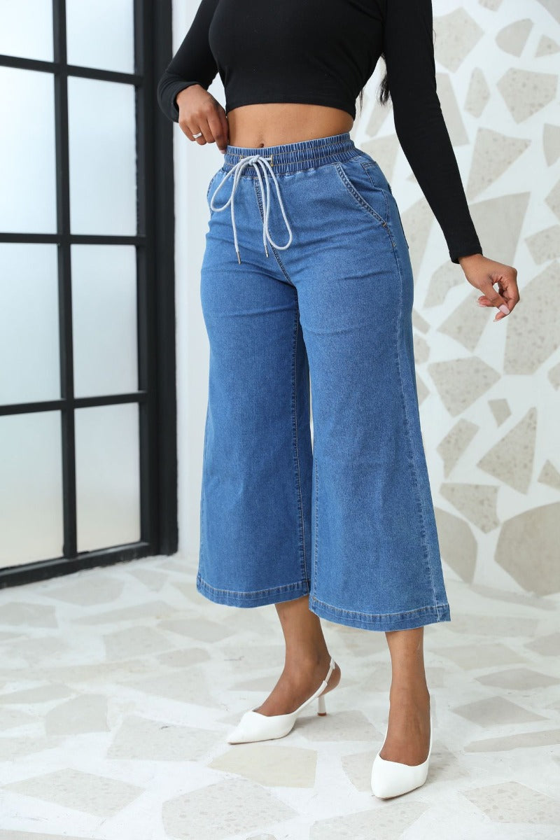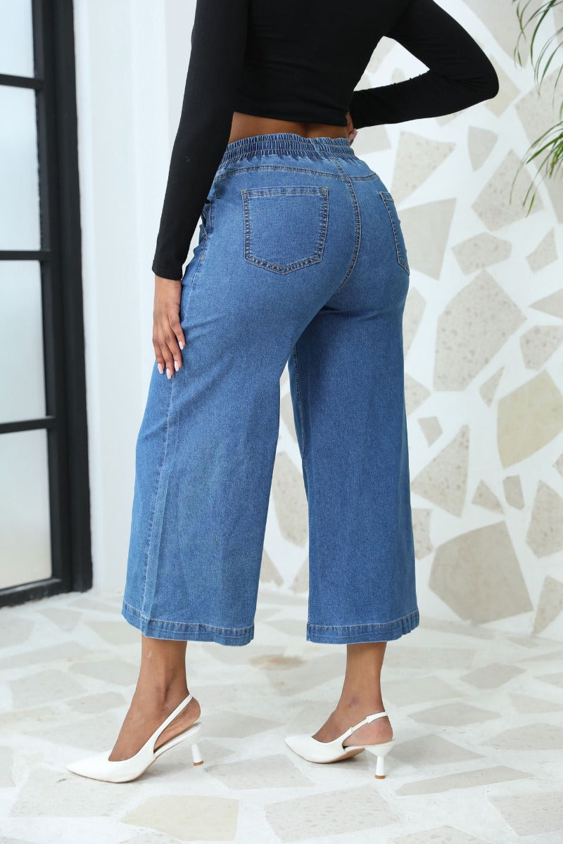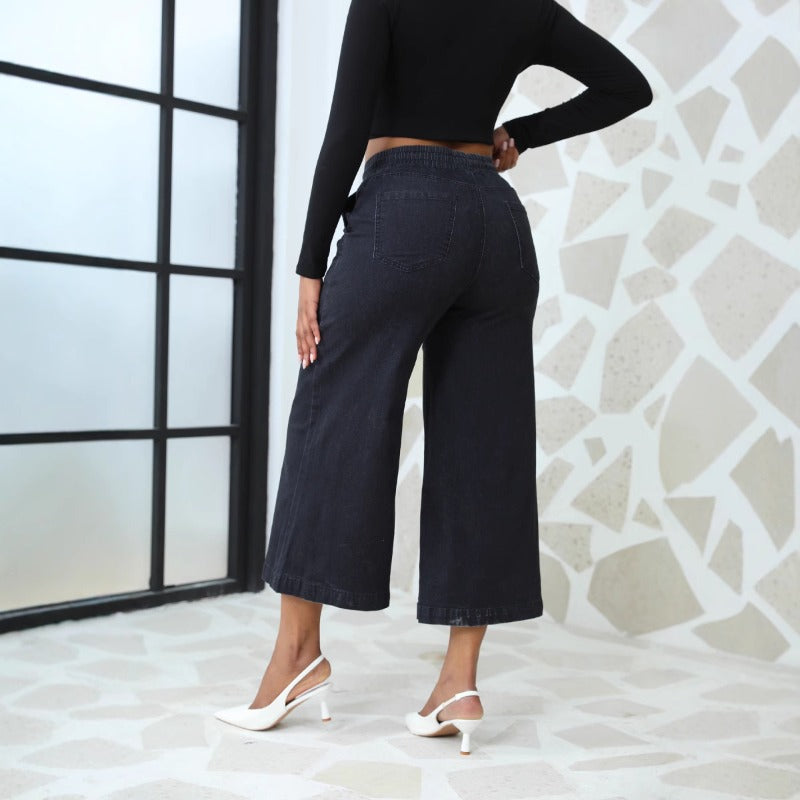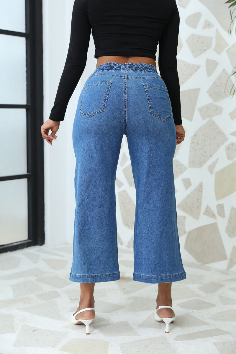 Straight Leg Wide Leg Lace-Up Nine-Point Jeans