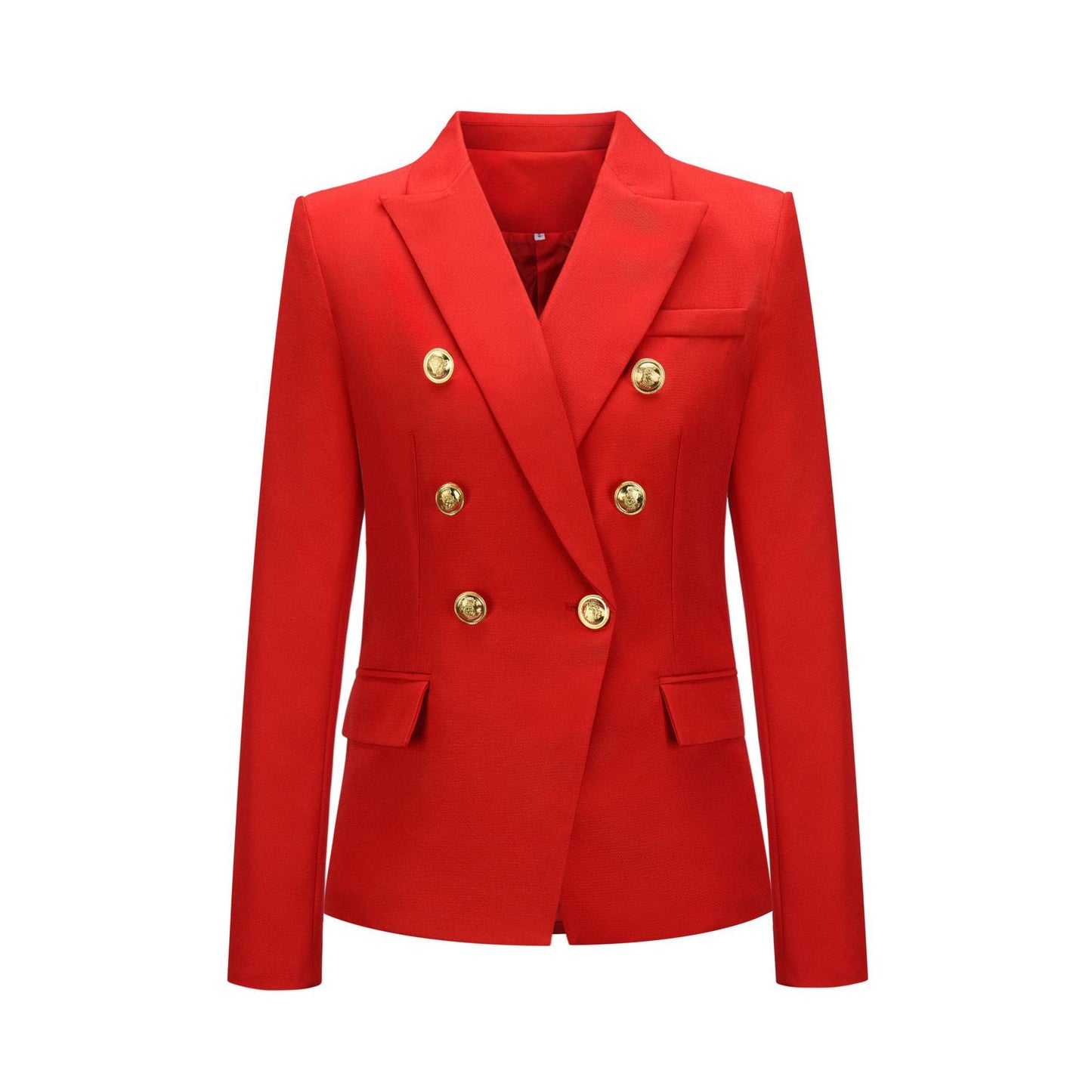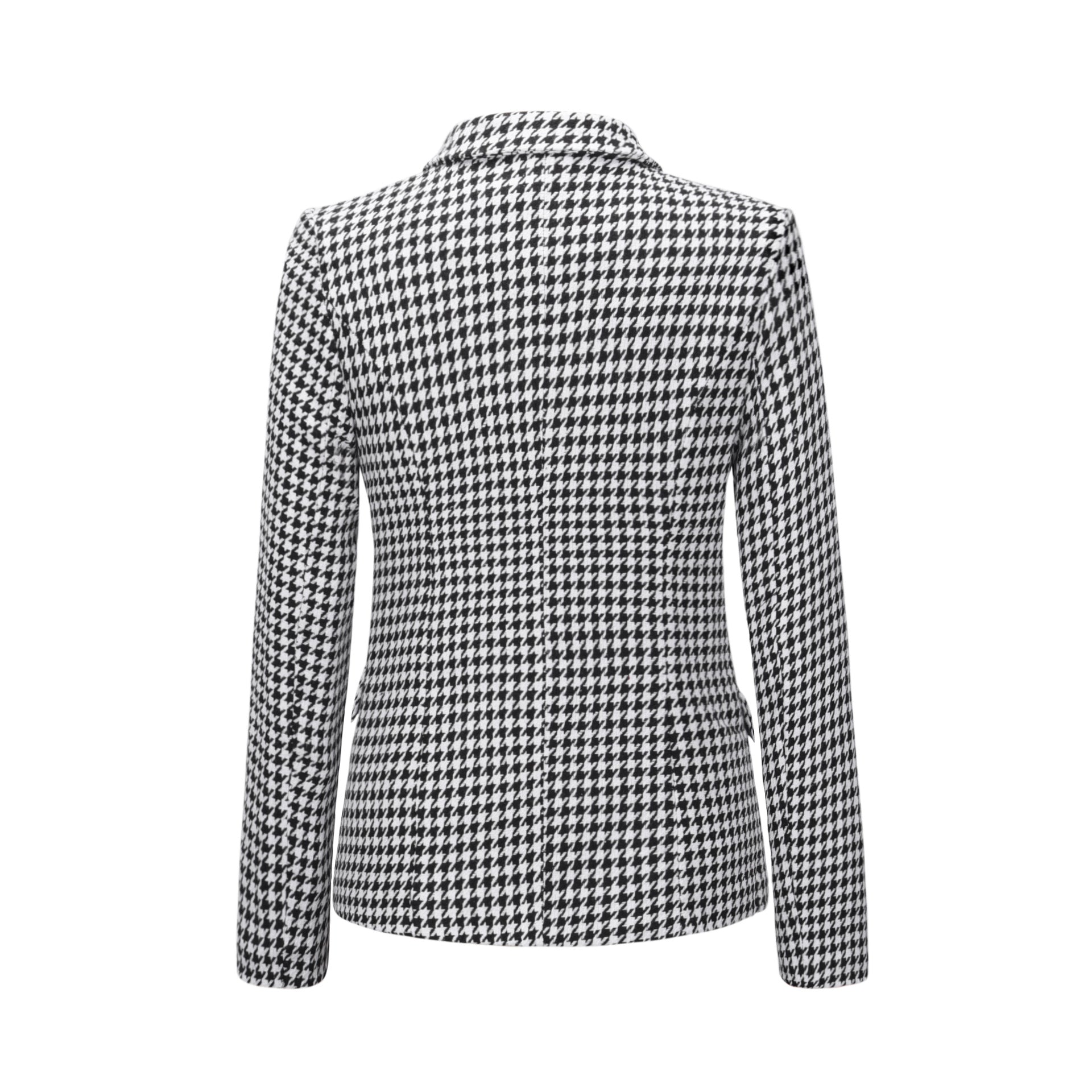 • Classic blazer jacket in slim fit, taper you at waist, featuring gold button placket, 1 button closure.2 flap pockets at side for your hand, solid color: black/ white/ red/ hot pink/ blue/ houndstooth available