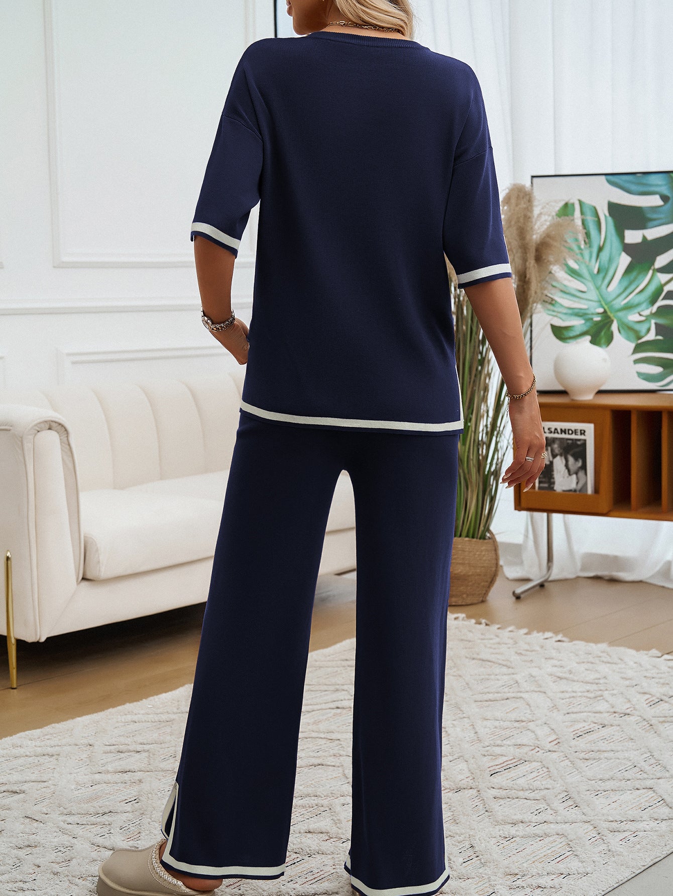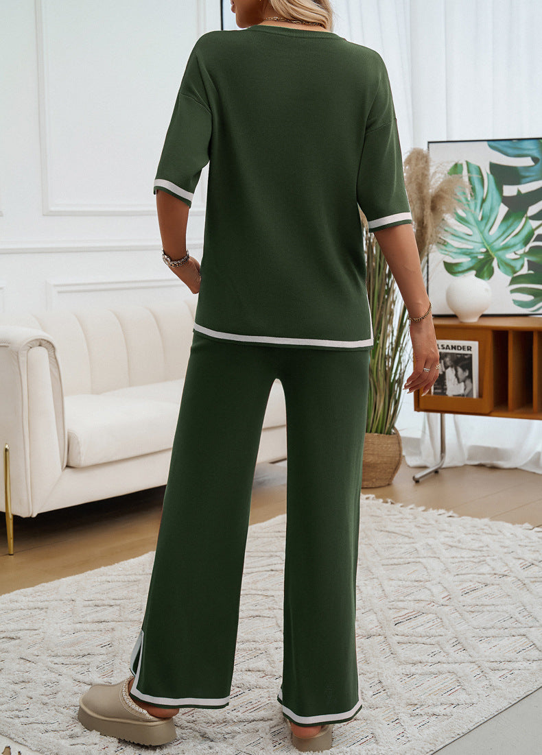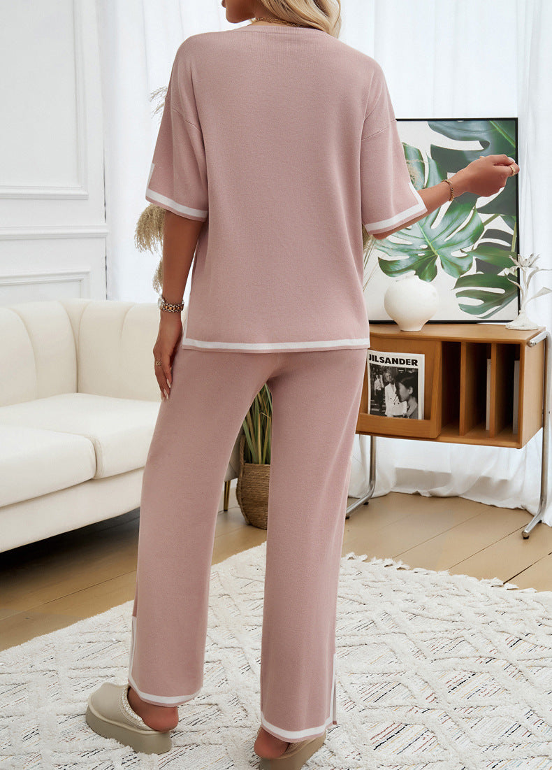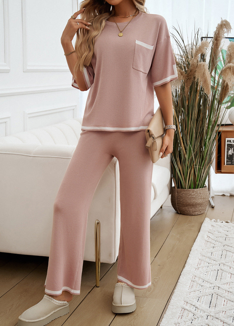 2 Piece Short Sleeve Contrasting Sweater Trouser Set