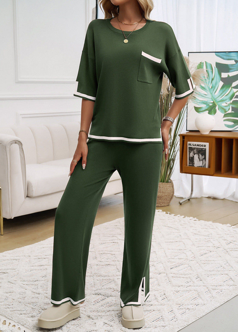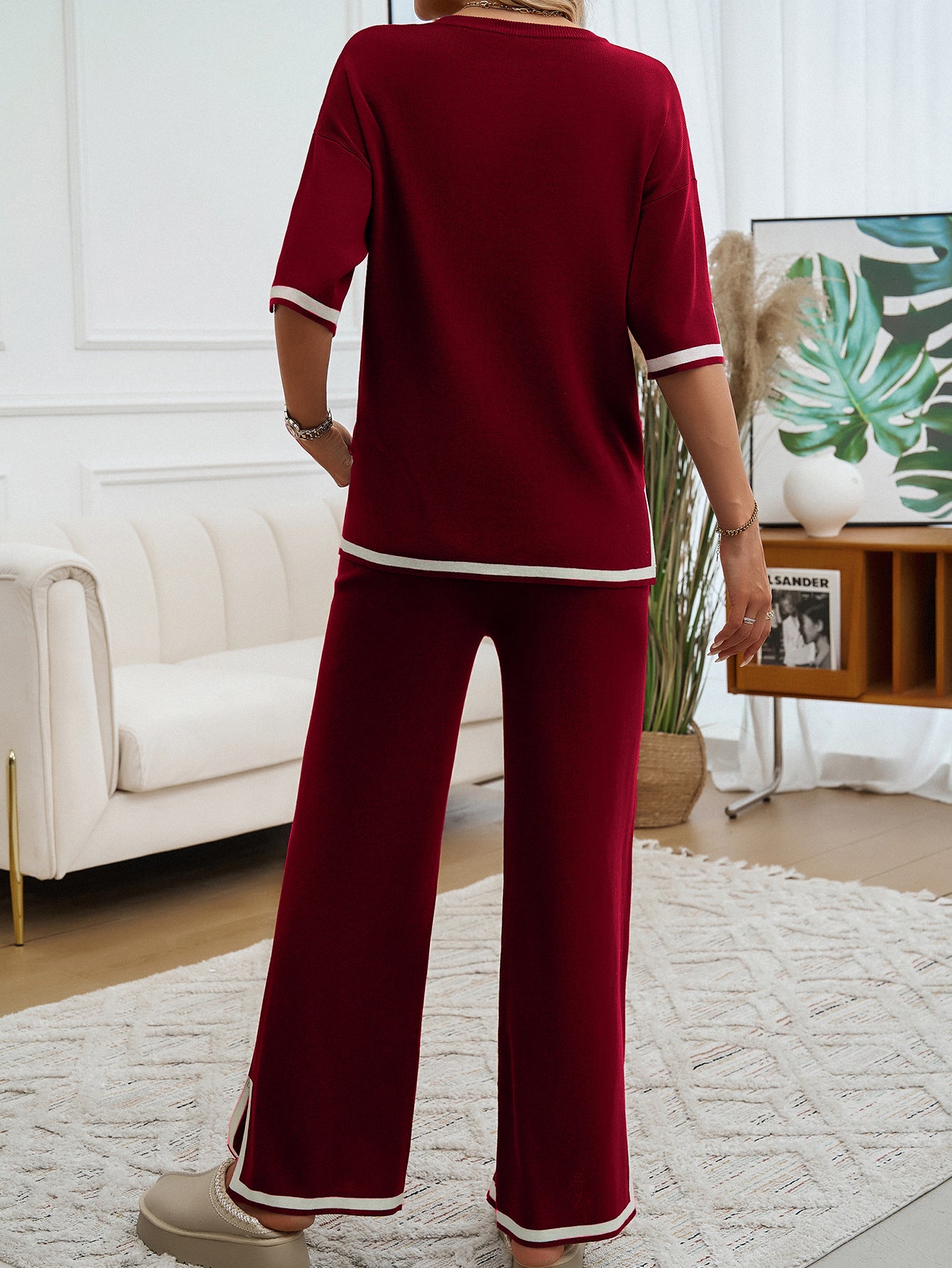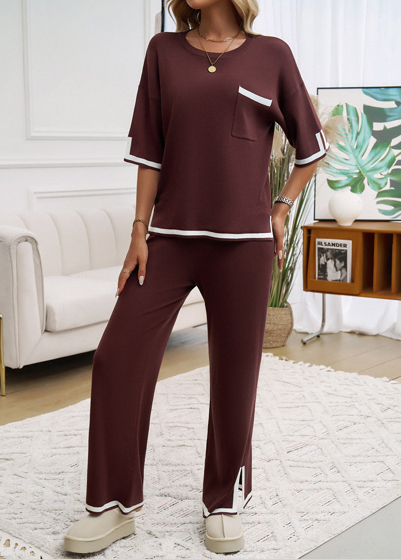 2 Piece Short Sleeve Contrasting Sweater Trouser Set