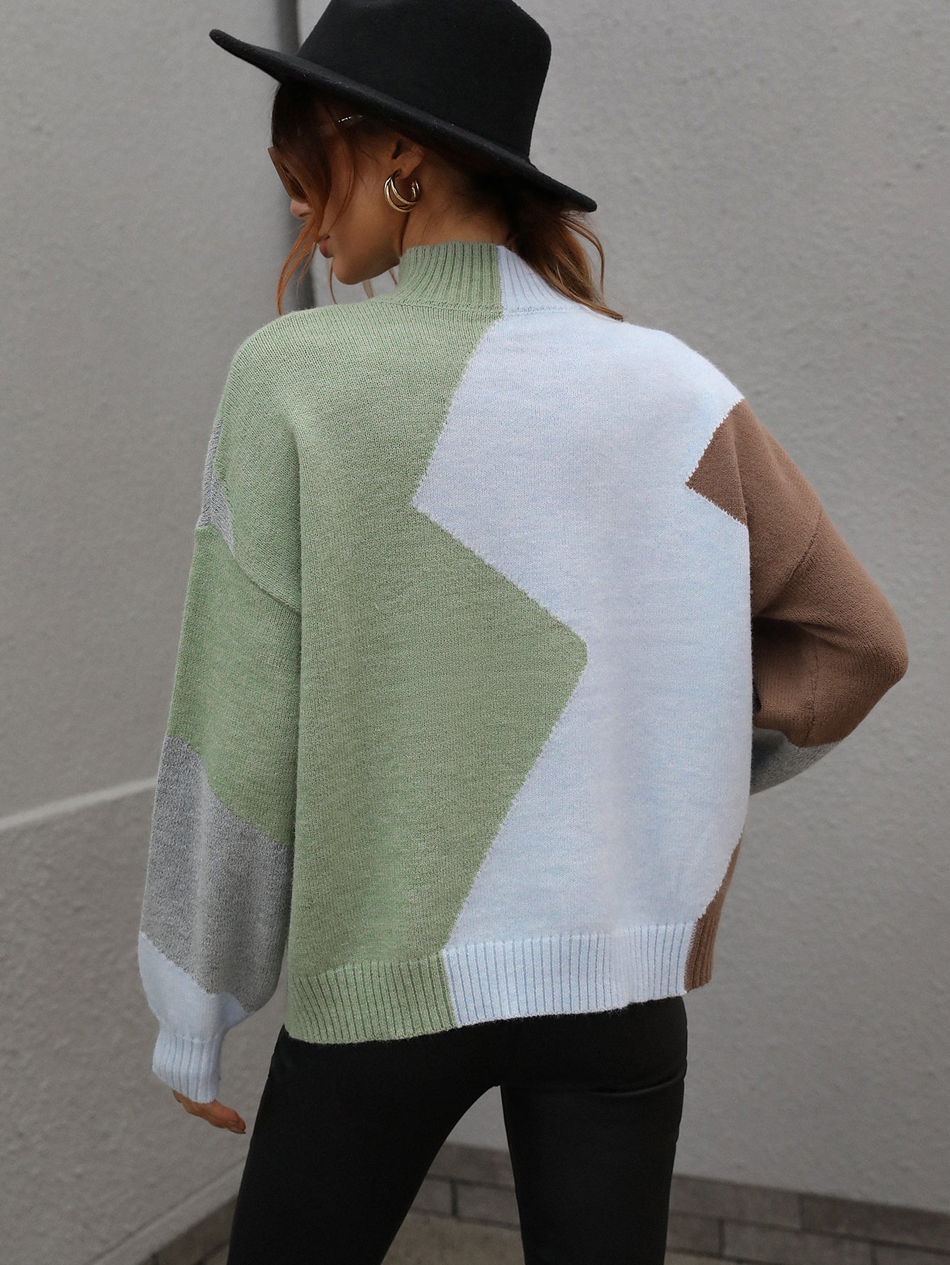 Category】Women's Sweater, Pullover Sweater, Colorblocking Sweater, Patchwork Sweater, Knitted Sweater, Fall Sweater.