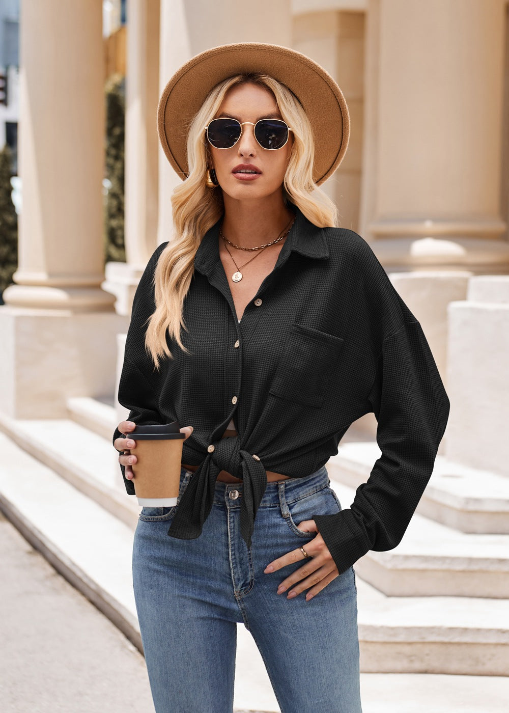Women's Casual Loose Pocket Waffle Fashion Shirt