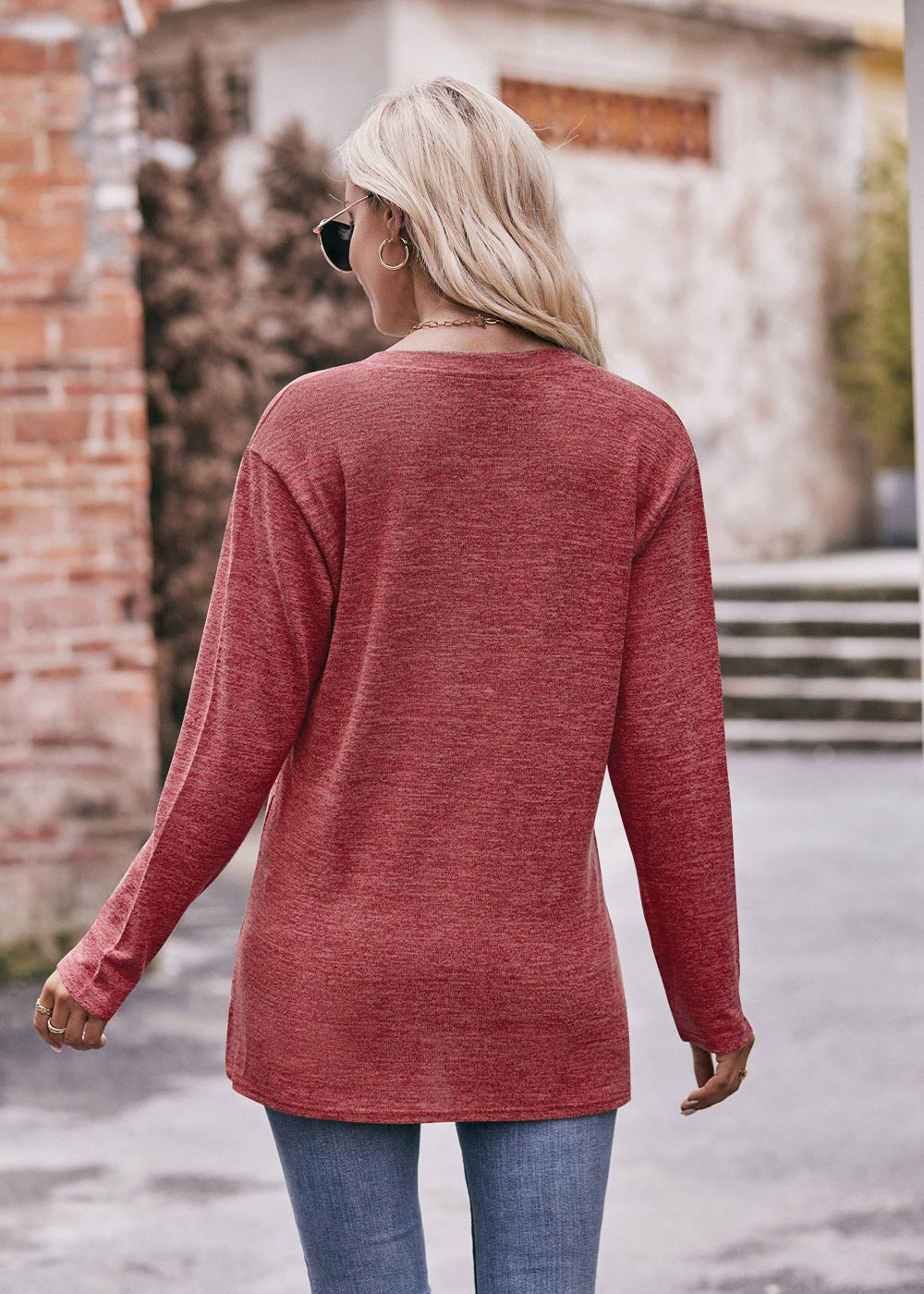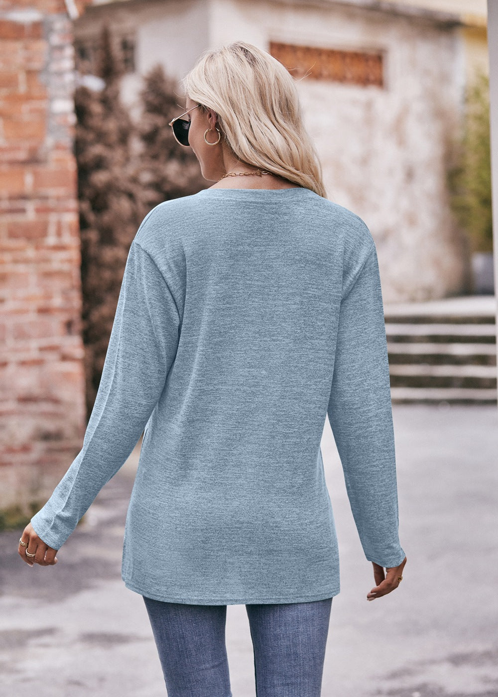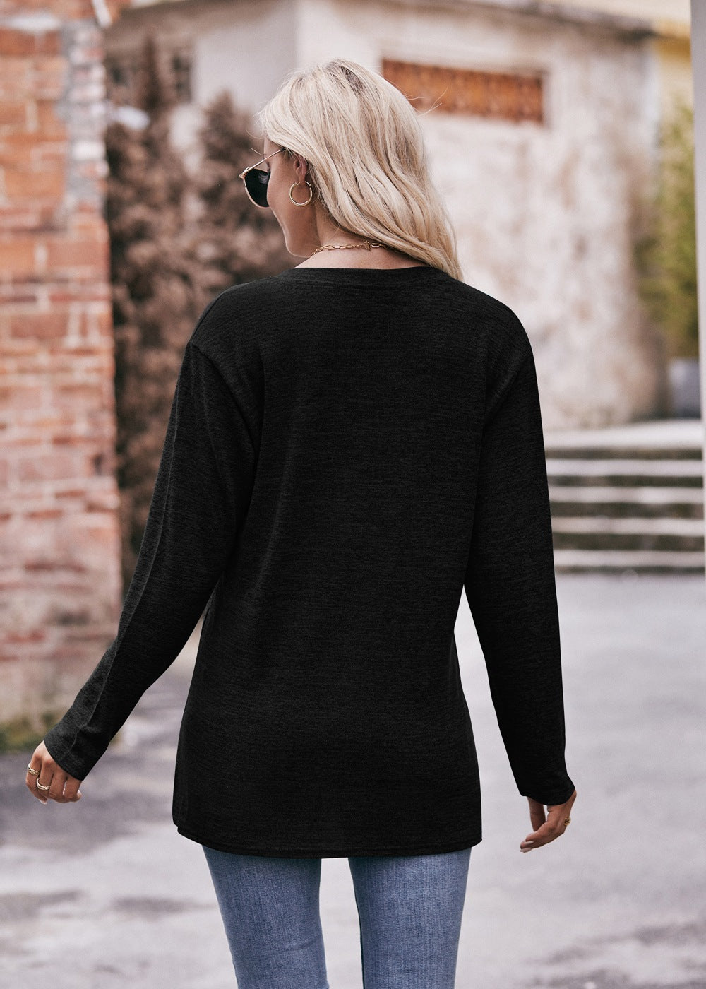 Casual V-neck Button Polished T-shirt Long-sleeved Top