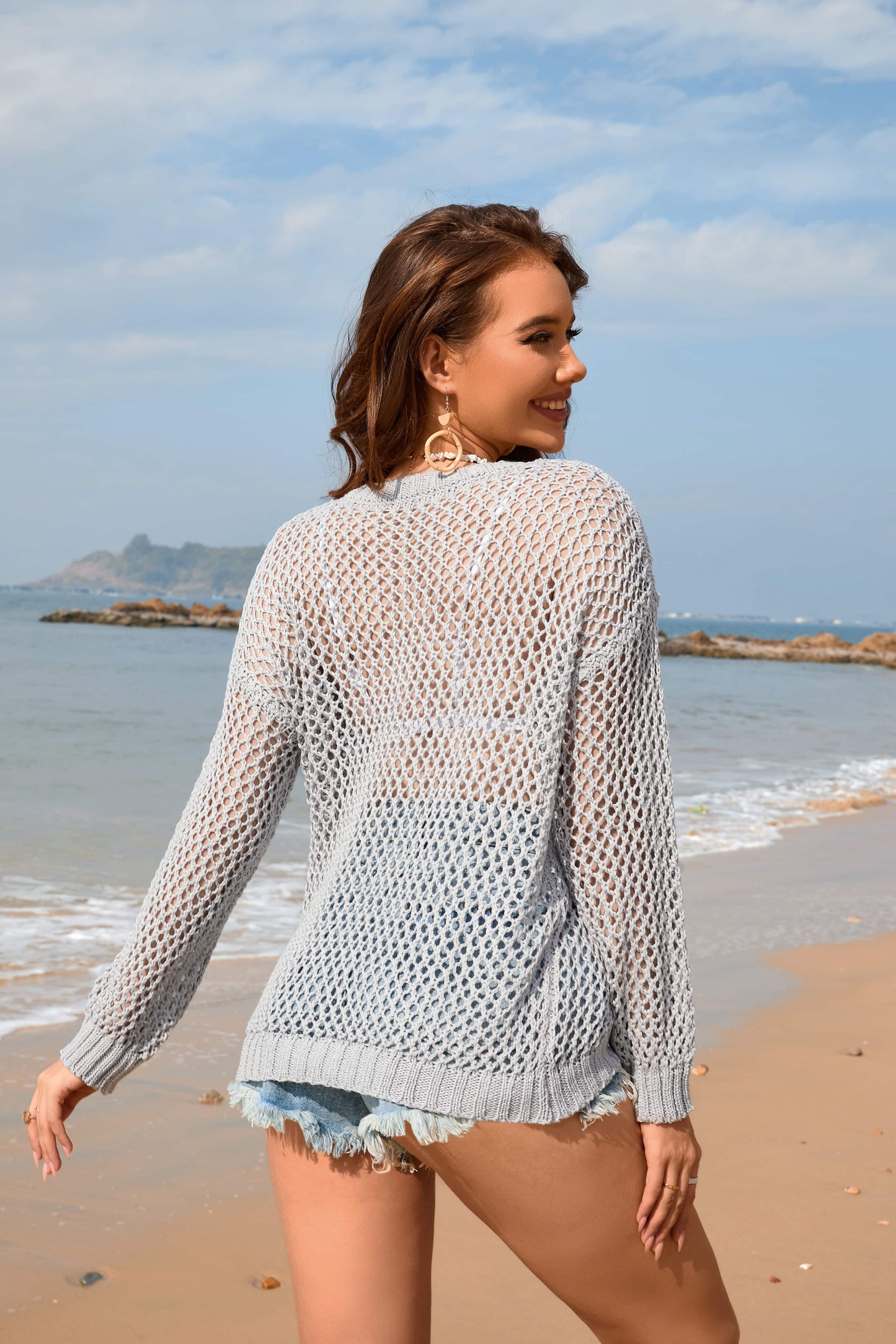 - MATCH: This beach sweater with holes can be paired with a camisole, jeans, leggings, high heels, bags, or jewelry to create a casual street look, or as a crochet cover-up with bikini cover-up, swimsuit, or swimwear.
