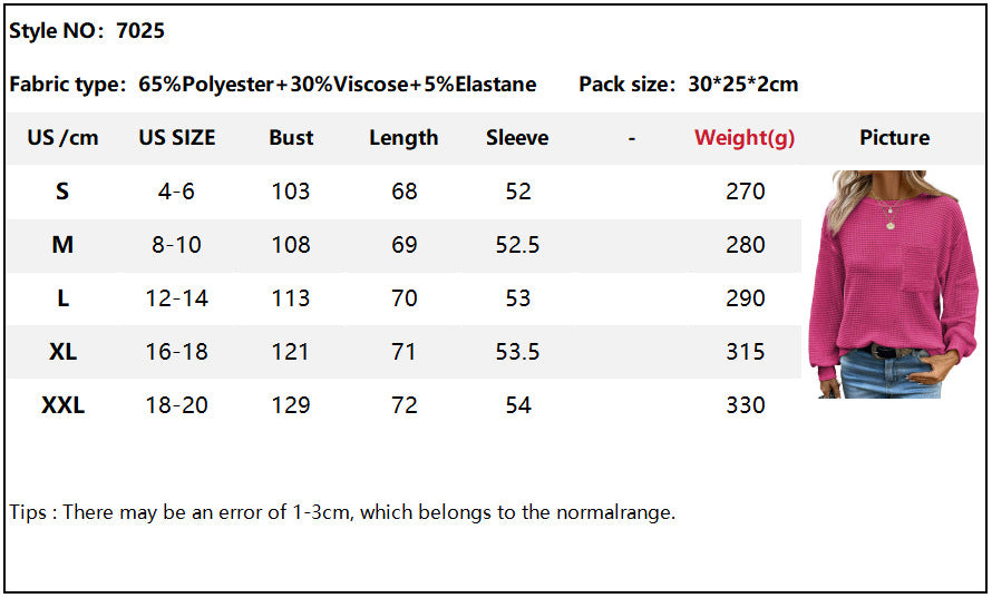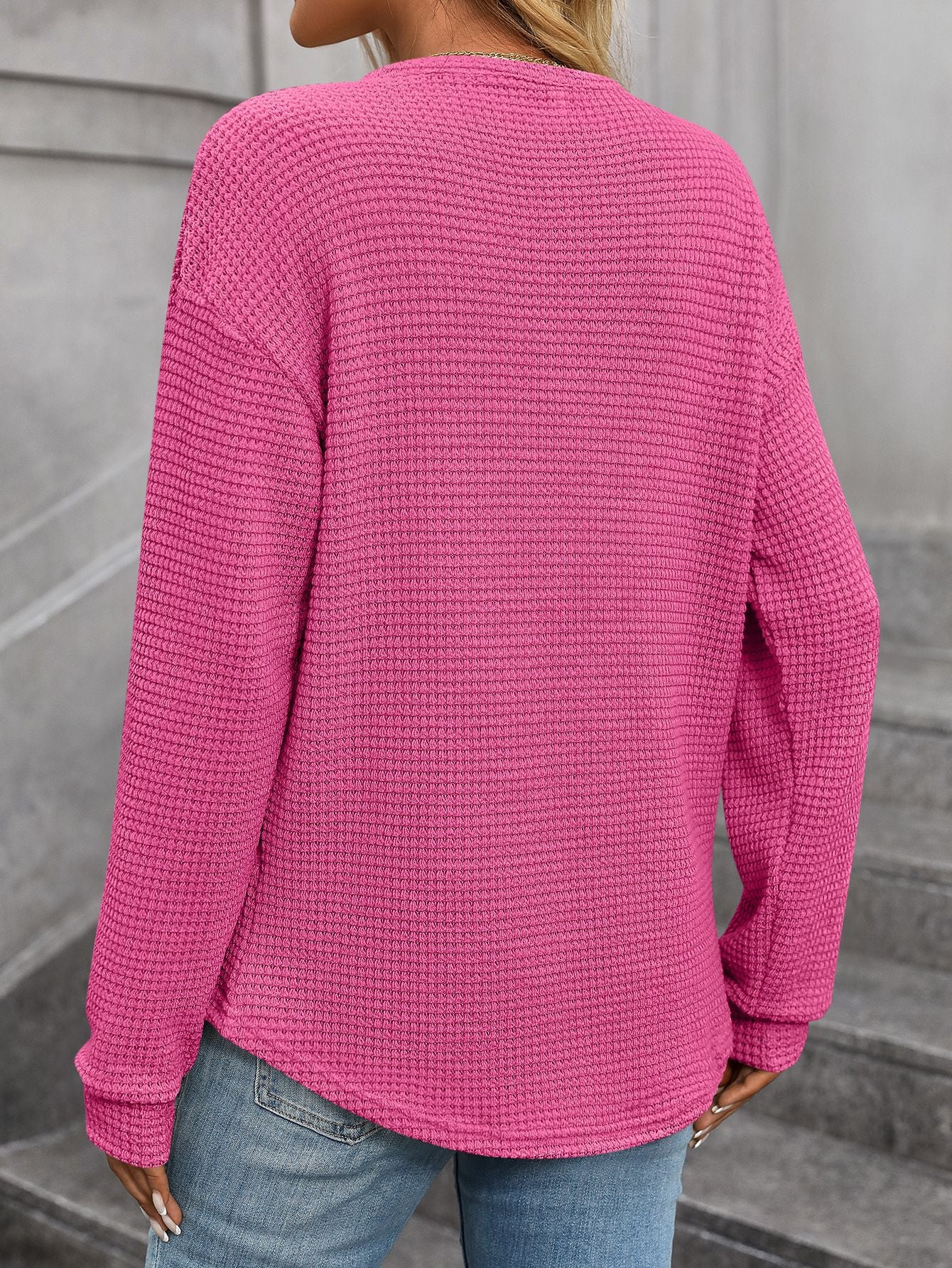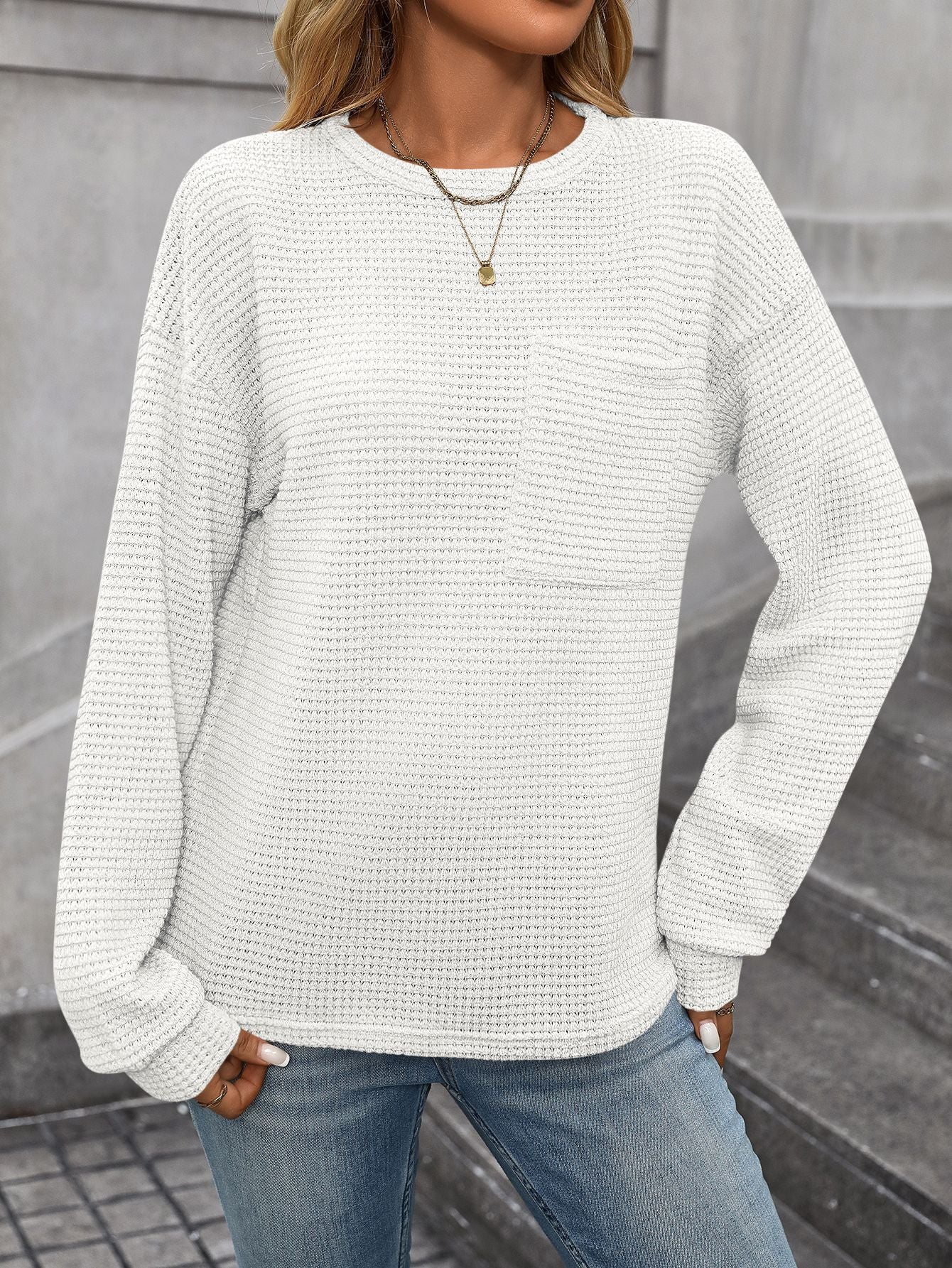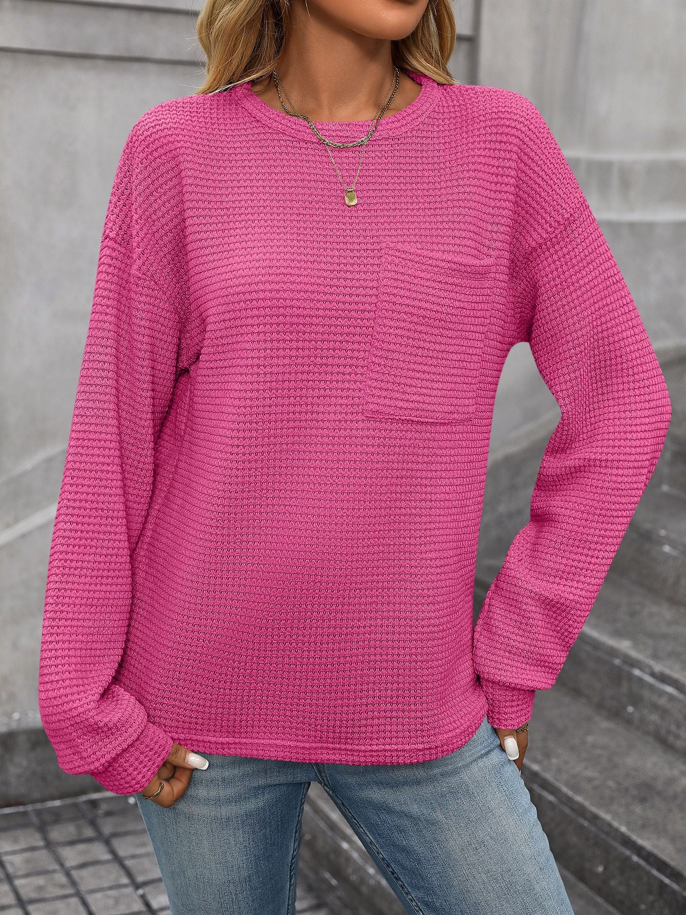 Waffle Solid Color Crew Neck Pocket Casual Loose T-Shirt