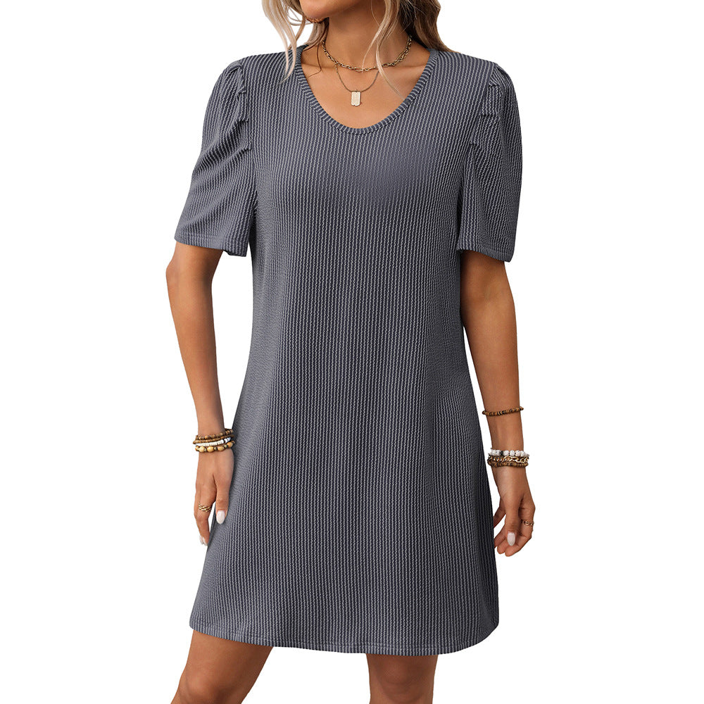 - Features V-neck dress, short sleeves and knee-length, swing dress, loose and comfortable, covers large hips, comes with pockets. It's not too loose so you don't have to wear tights if you don't want to.