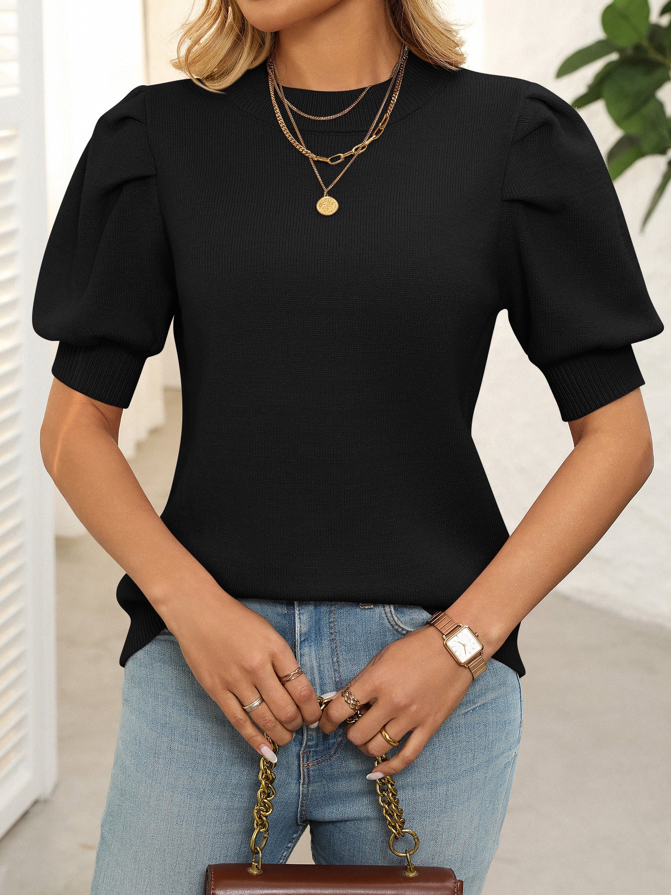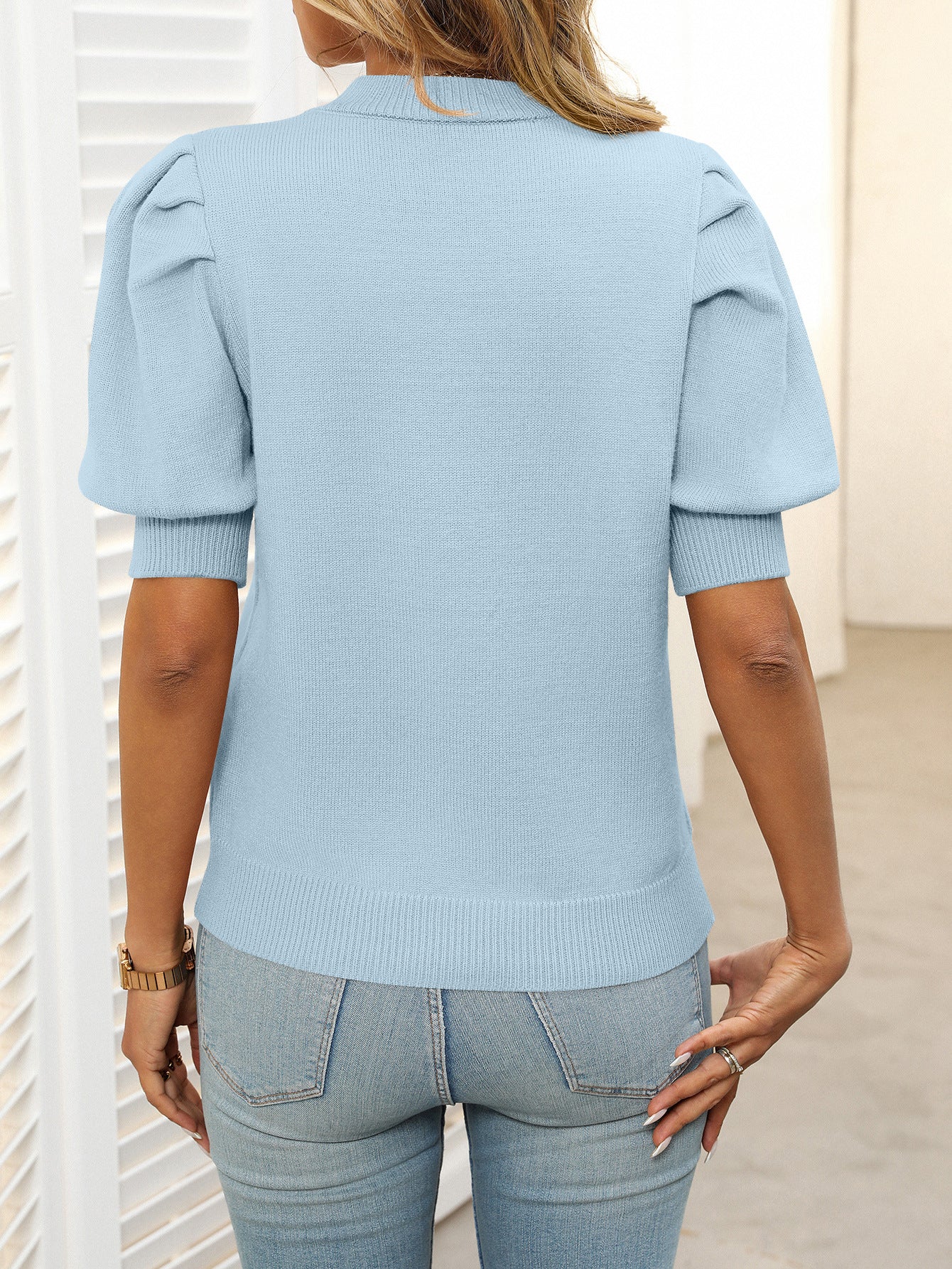 Women's Solid Color Short-Sleeve Puff Sleeve Sweater