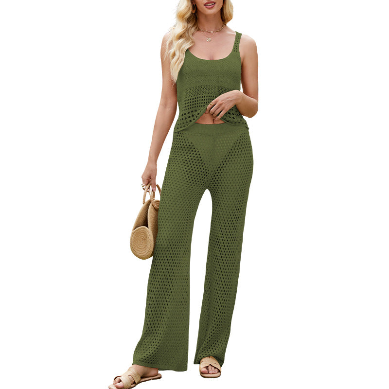 2026 Summer Women's Crochet Sleeveless Knit Two-Piece Set
