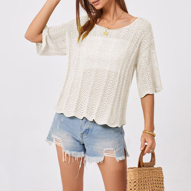 2026 Summer Women’s Loose Knit Hollow Round Neck Top