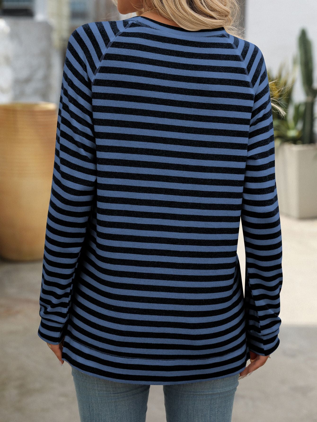 Striped Contrast Crew Neck Long Sleeve Loose Top