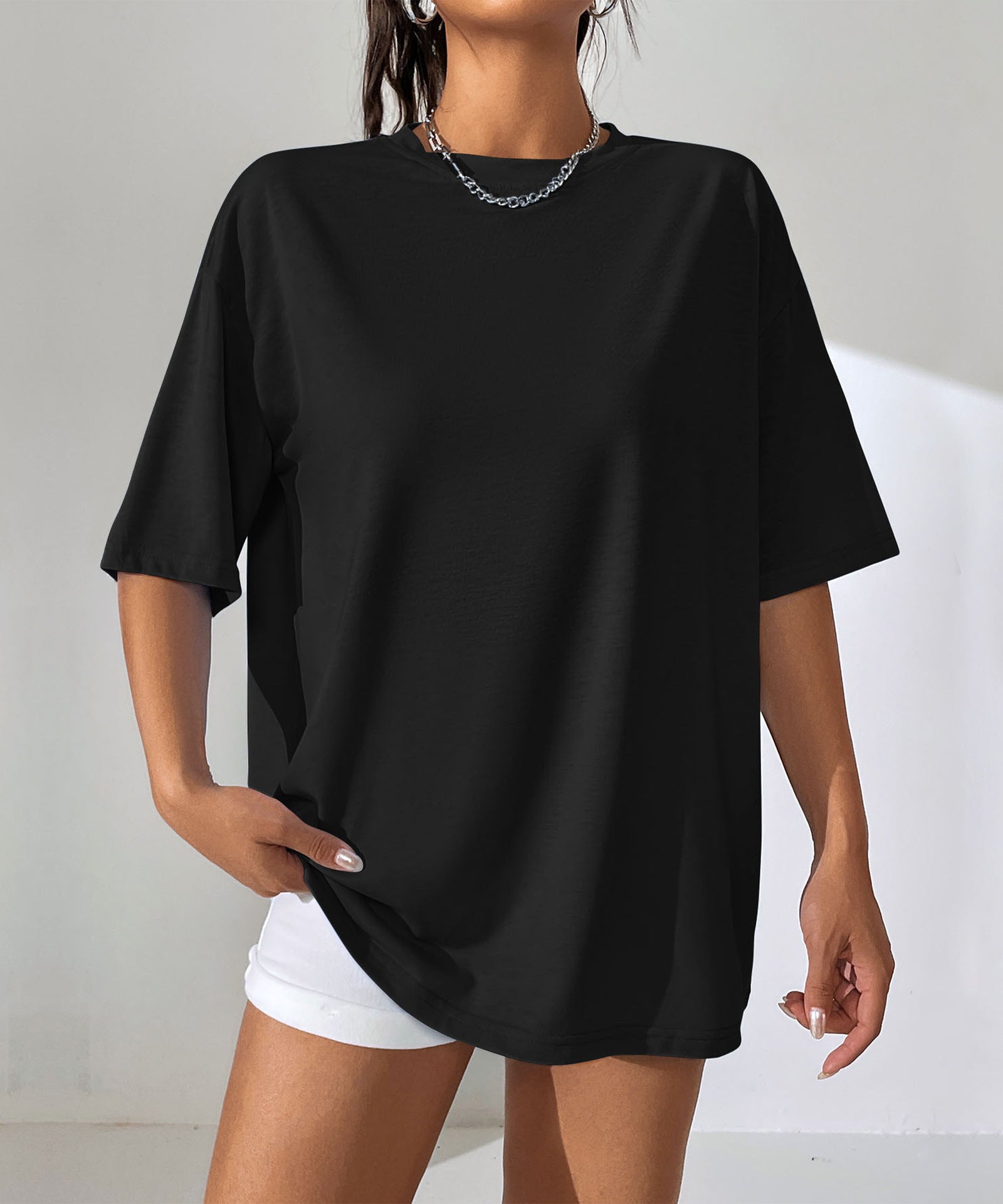 Oversize Casual Solid Short Sleeve Round Neck T Shirt