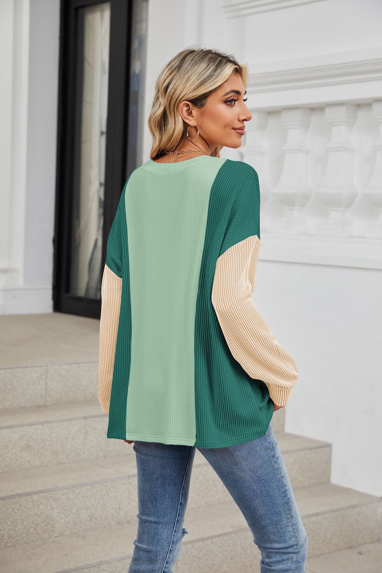 - Features: Featuring a bold Color Block design-incorporating fall fashion elements.Hips Length,the arms are long enough,a loose fit,classic crew neck.It can as a lightweight top to match with any outfit.