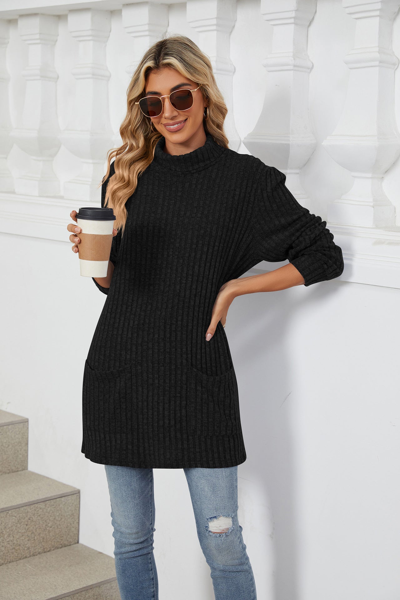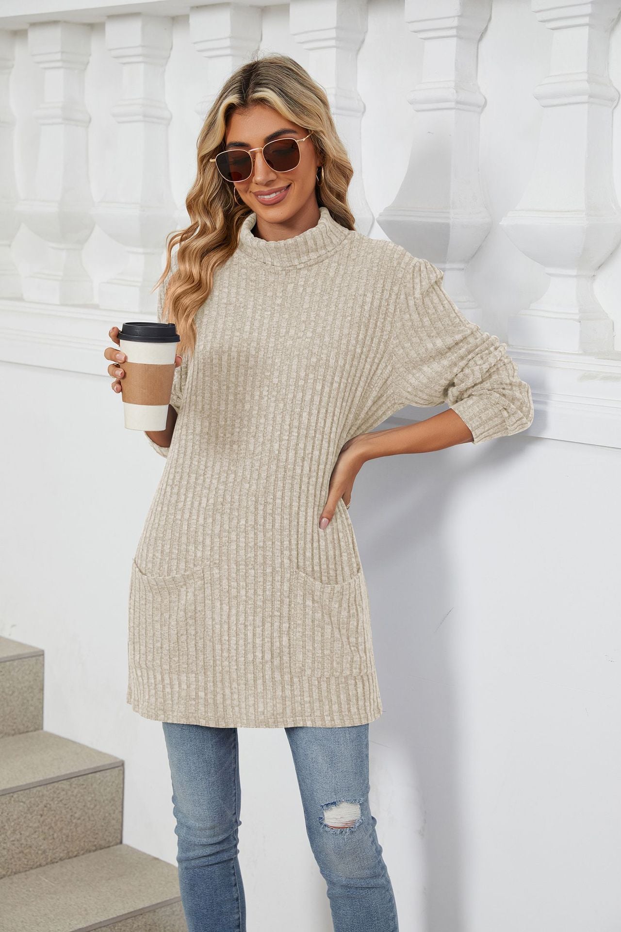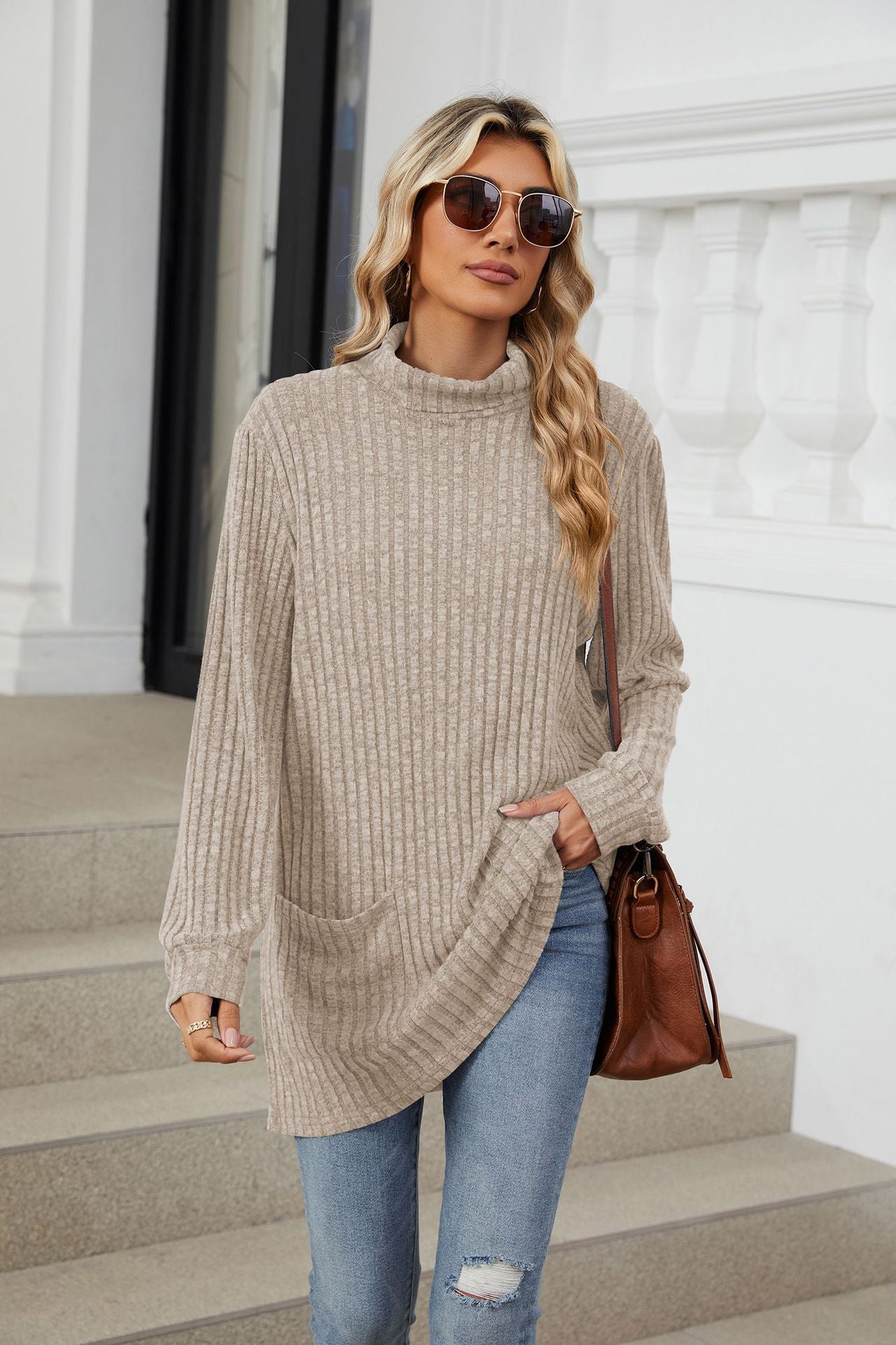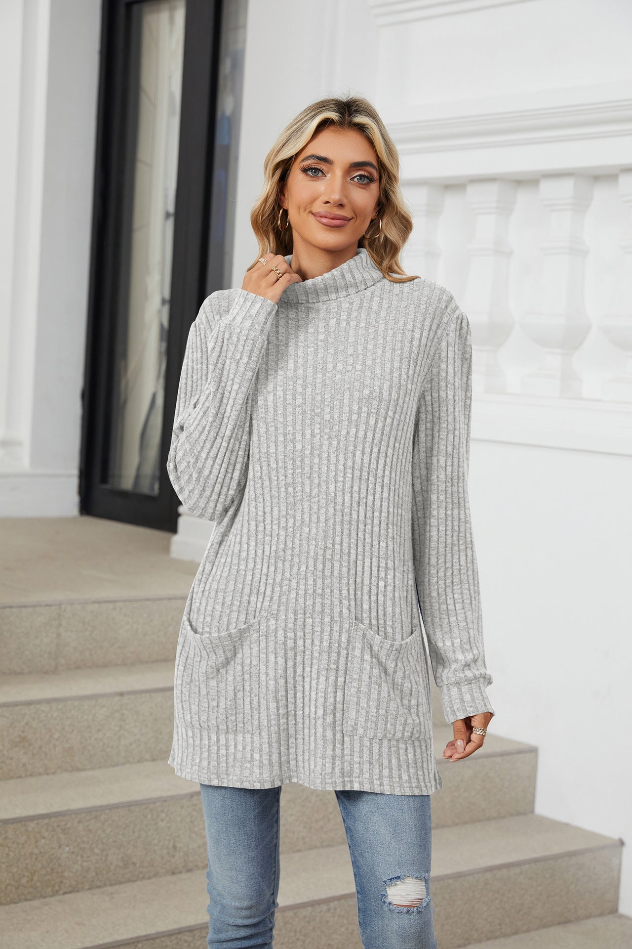 - Lightweight tunic: long sleeves, two pockets, tunic length and ribbed mock turtleneck design. Easy to create a casual and cute look