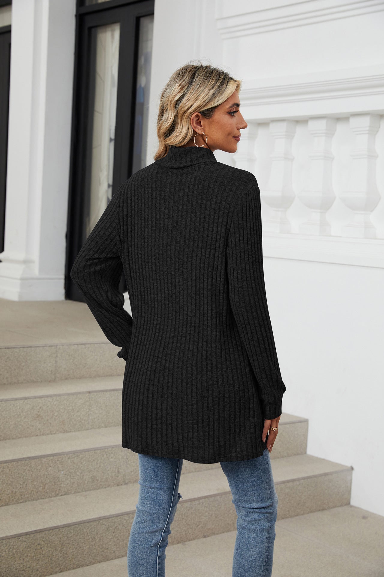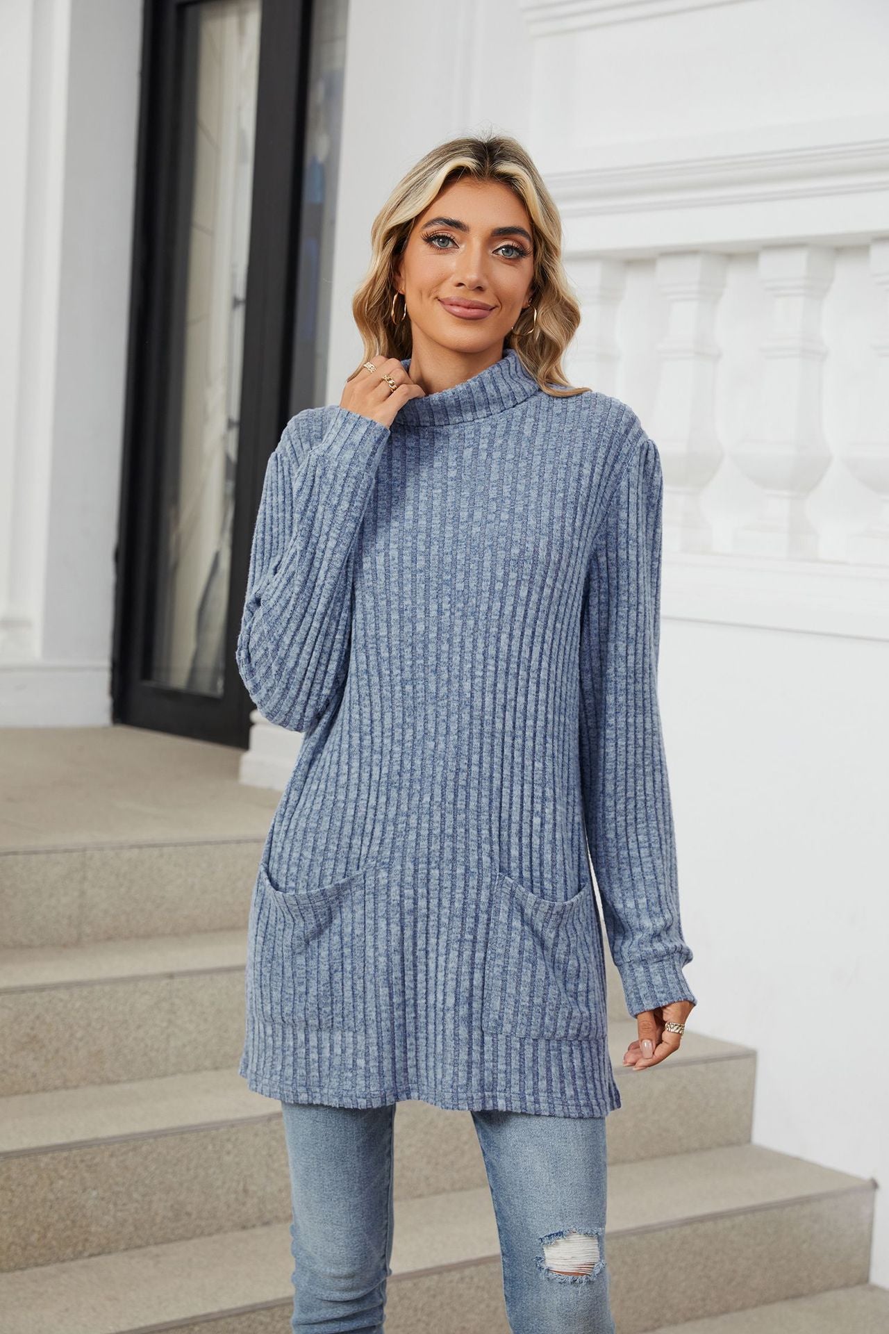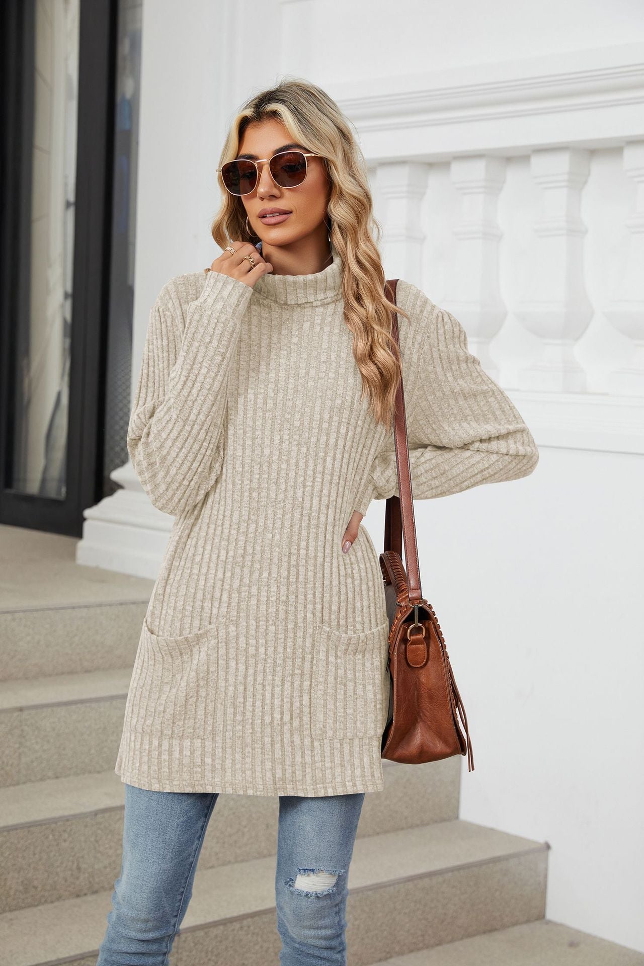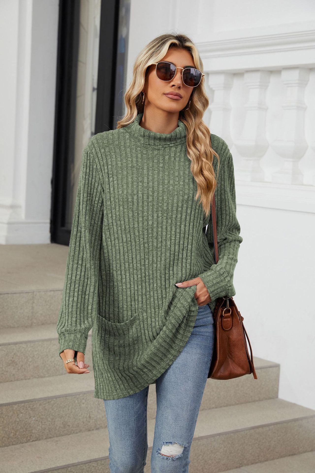 - Lightweight tunic: long sleeves, two pockets, tunic length and ribbed mock turtleneck design. Easy to create a casual and cute look