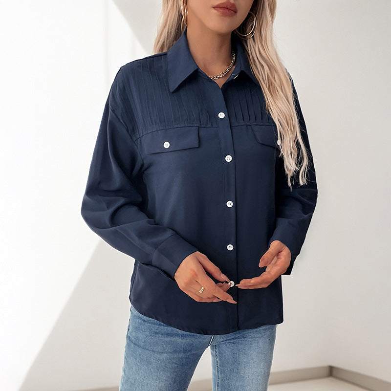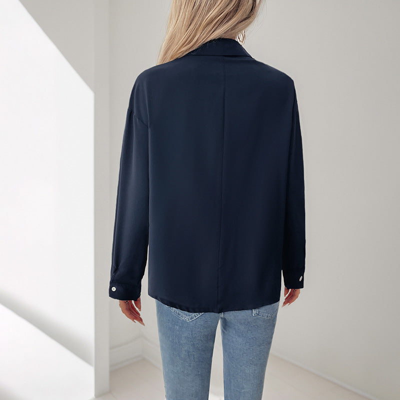 Commuter Lapel Shirt Women's Long-sleeved Cardigan Top