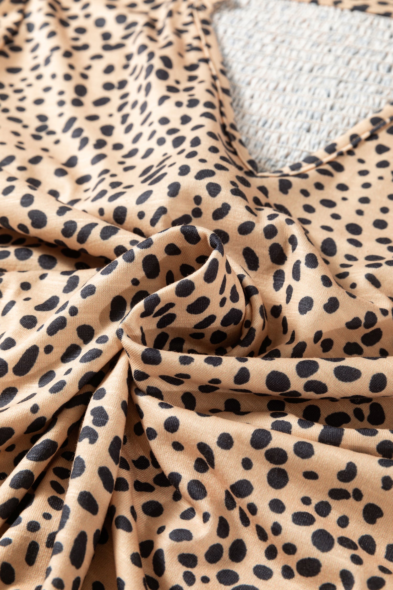 Apricot Cheeath Print Frilled V Neck Shirred Detail Short Sleeve Blouse