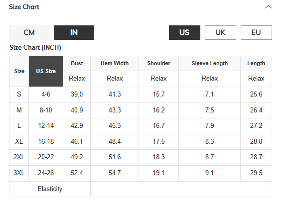 Size Chart (CM)