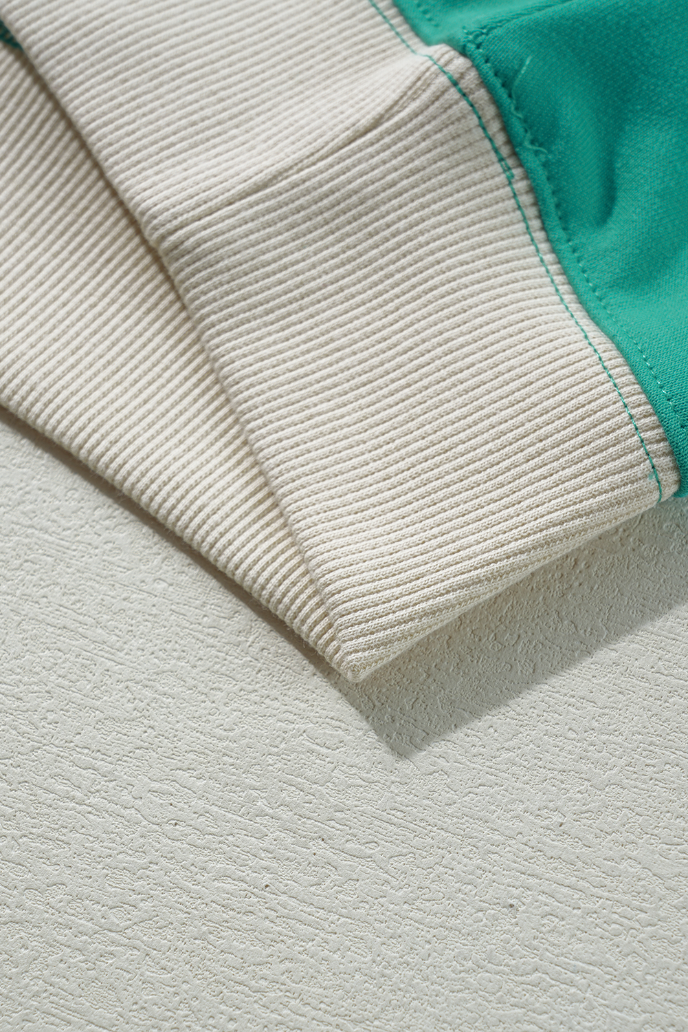 The raglan patchwork showcases a chic unique construction.