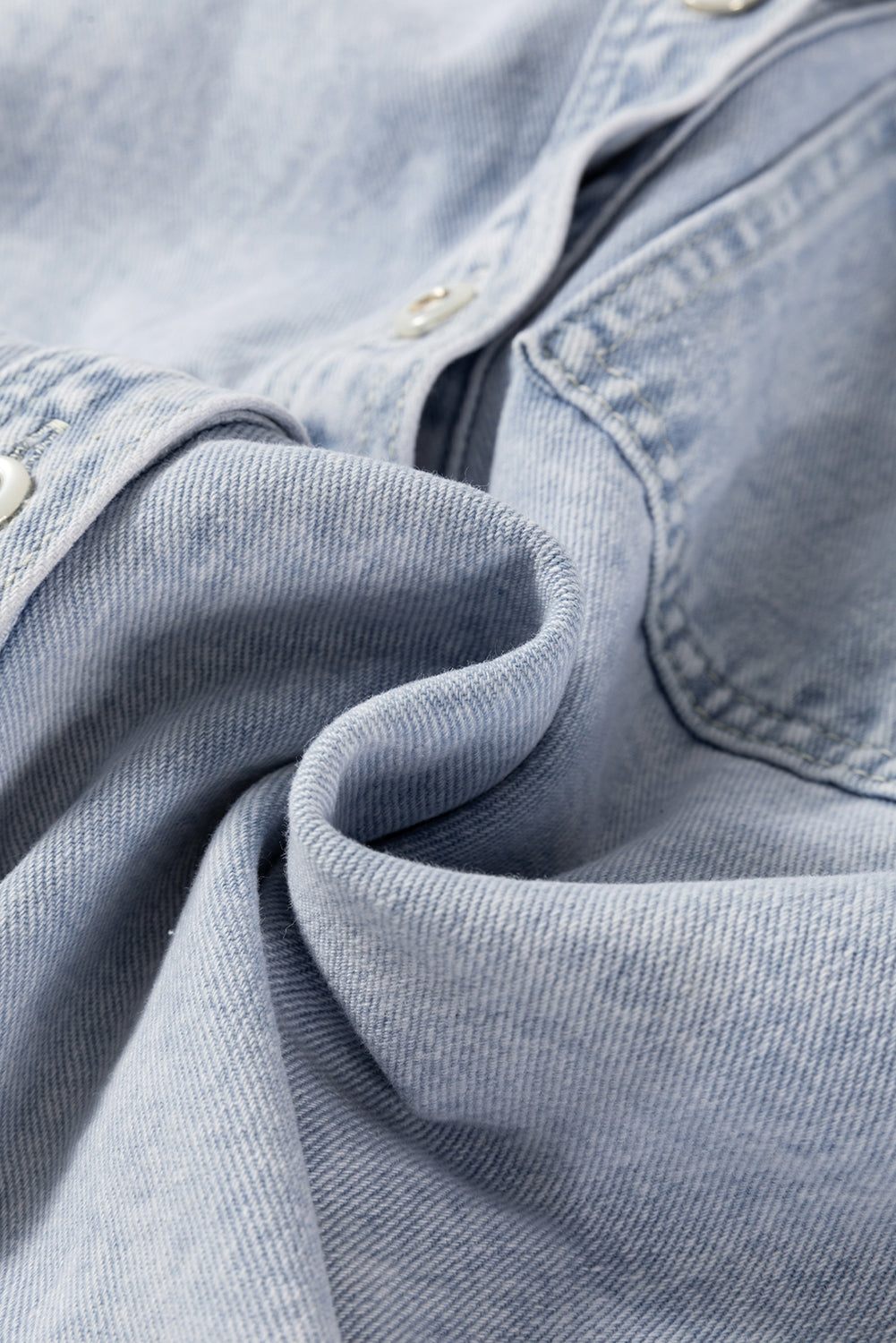 Beau Blue Long Sleeve Buttoned Chest Pocket Denim Shacket
