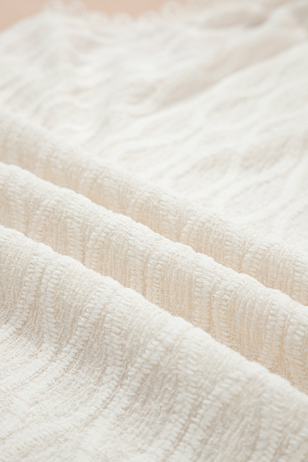 Beige Frenchy Lace Trim Textured Halter Tank Top