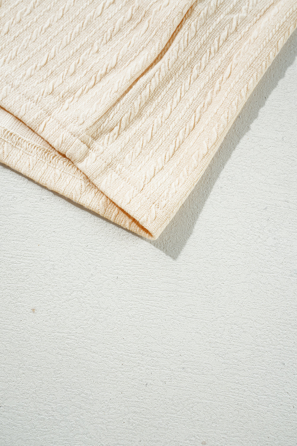 Beige Lace Crochet Patched Cable Textured Cuffed Short Sleeve Plus Size Top